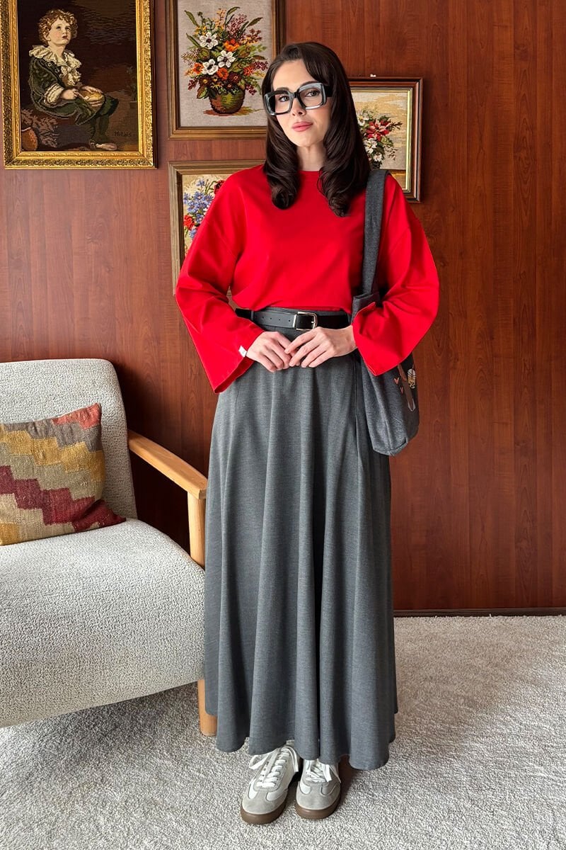 Kırmızı Body & Antrasit Poliviskon Kolej Etek Takım