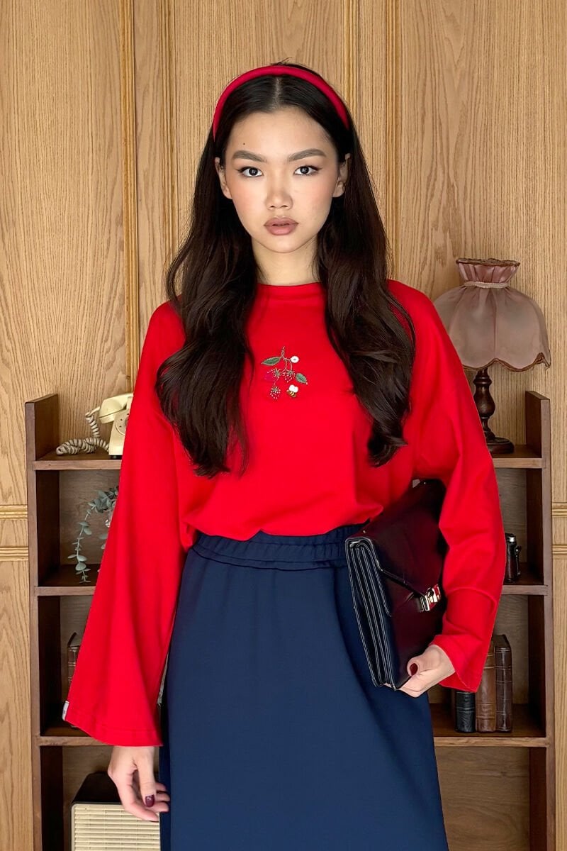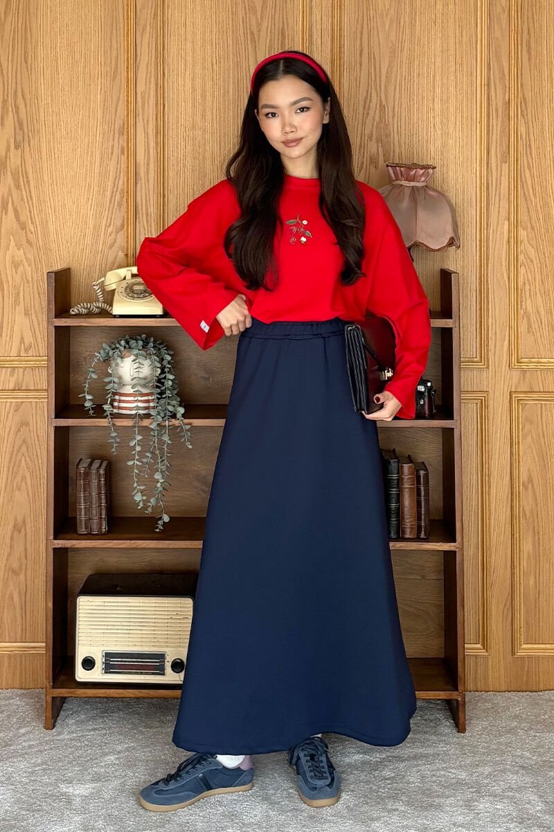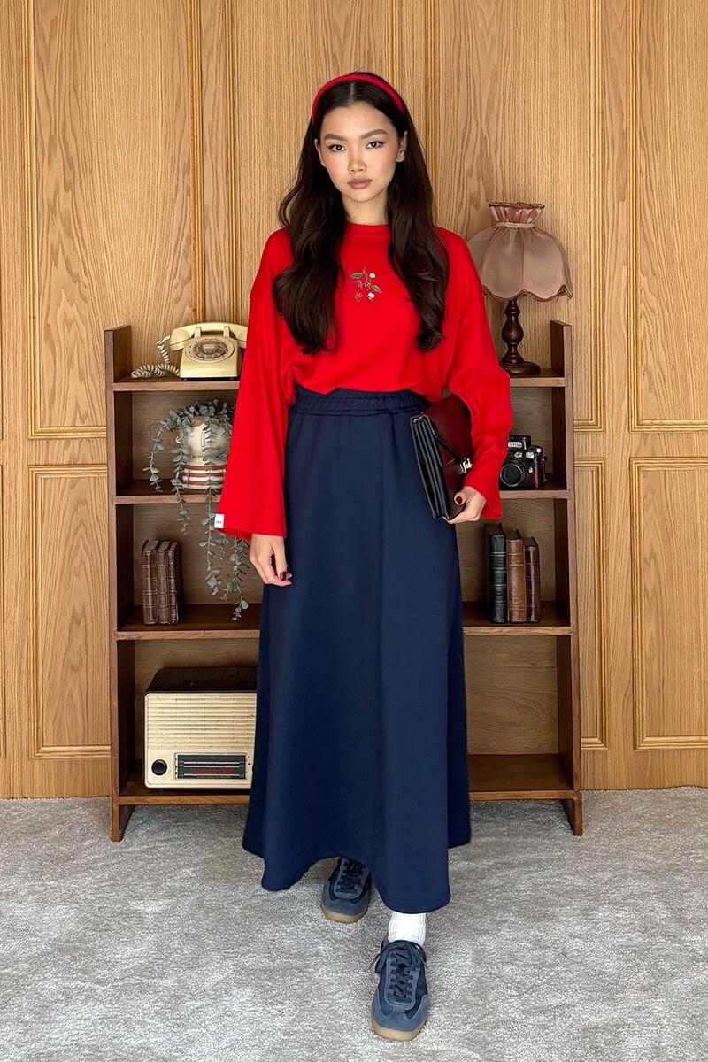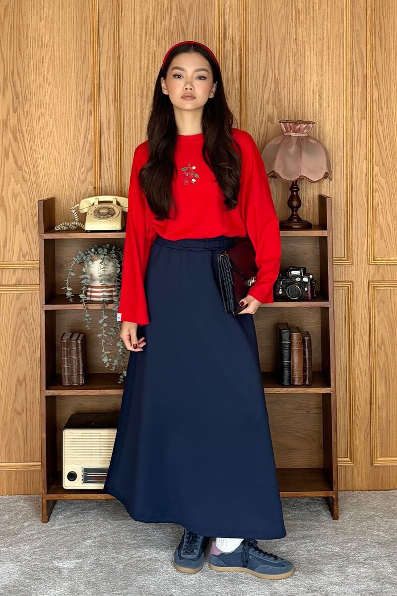 Kırmızı Nakışlı Body & İndigo Scuba Etek Takım