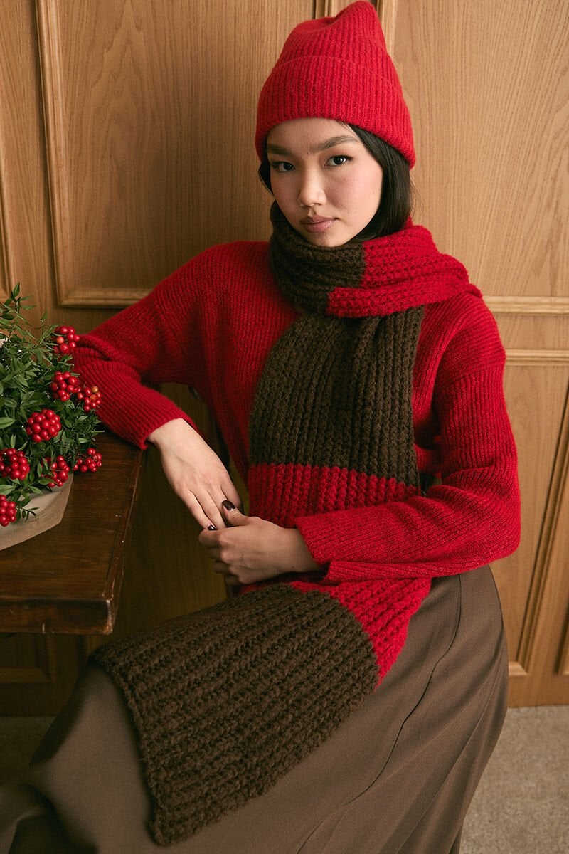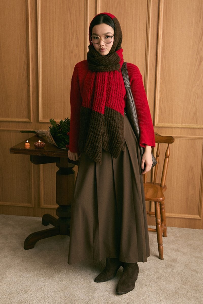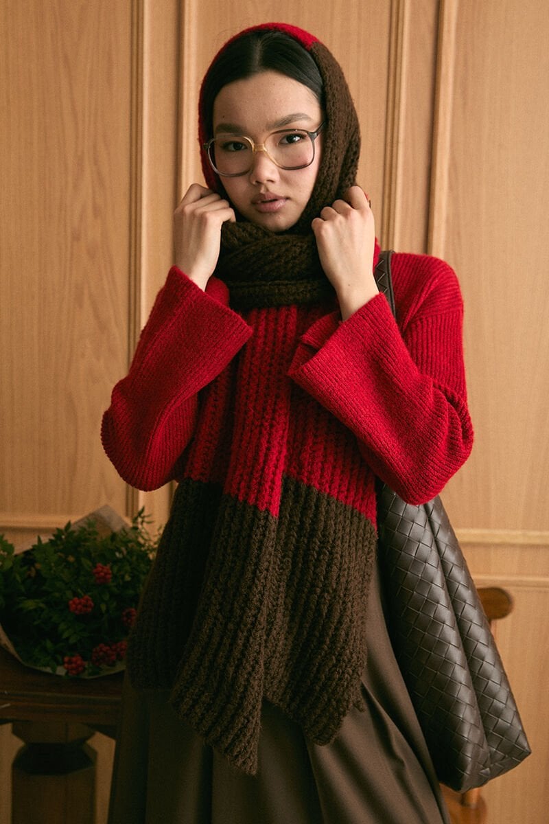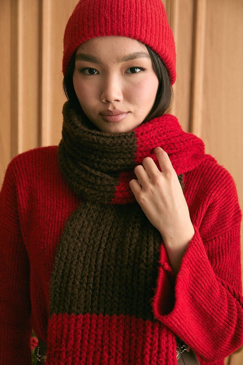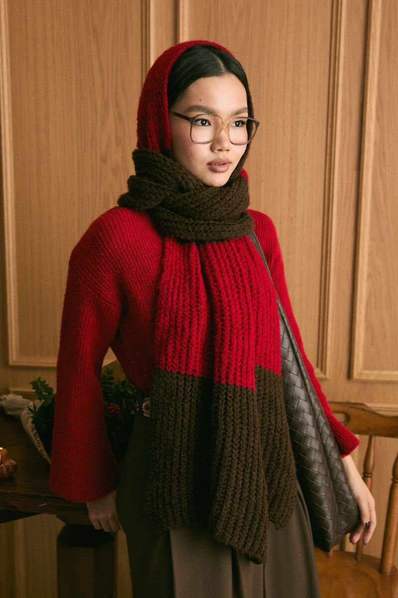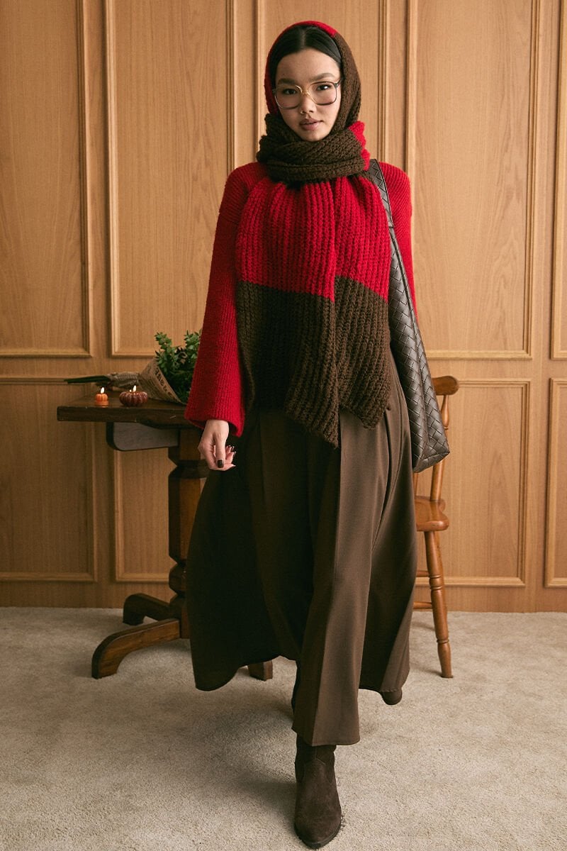 Kırmızı Triko İki Renk Atkı