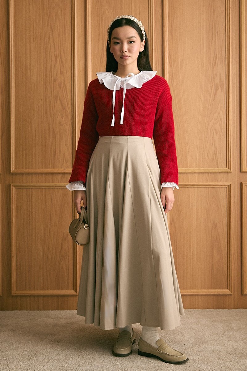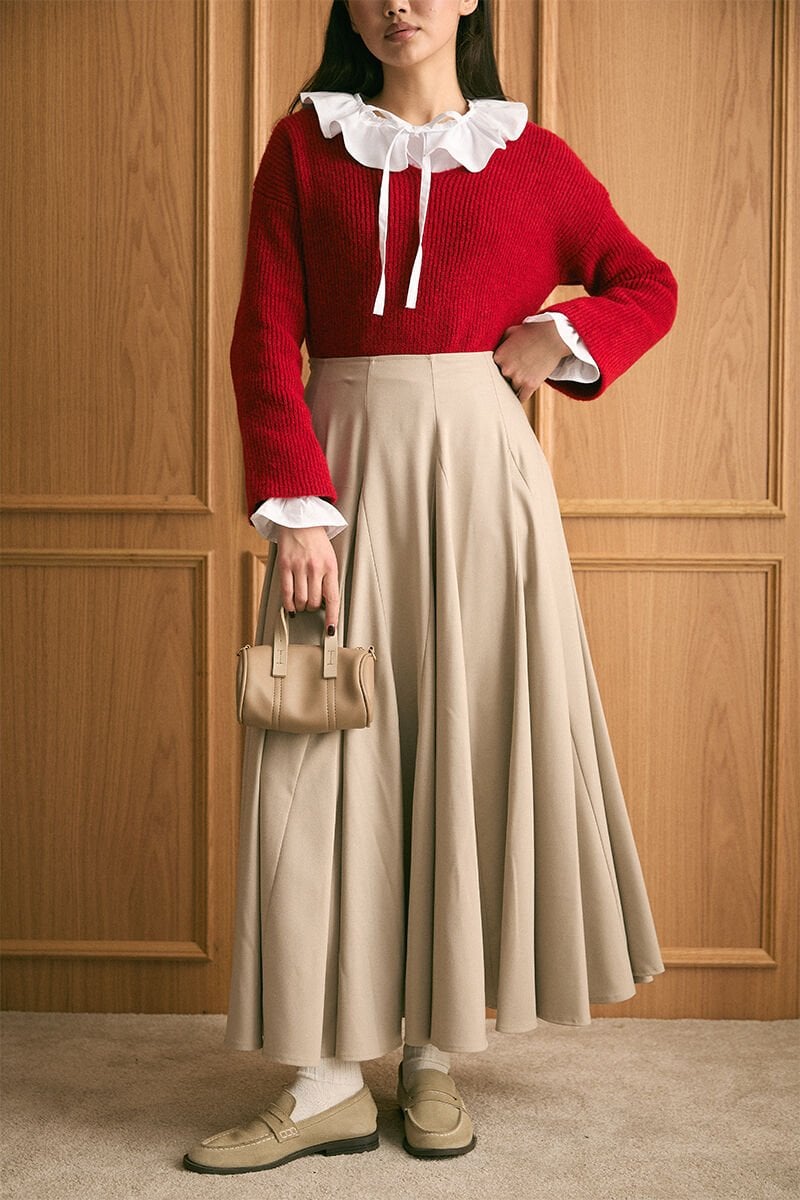 Kırmızı V Yaka Triko Kazak & Vizon Parçalı Etek Takım