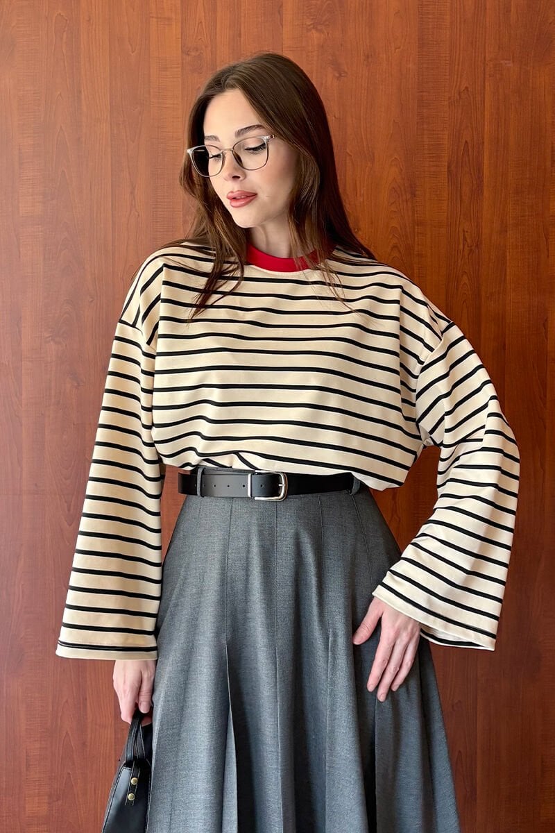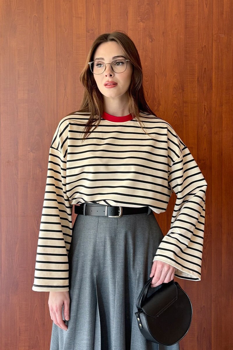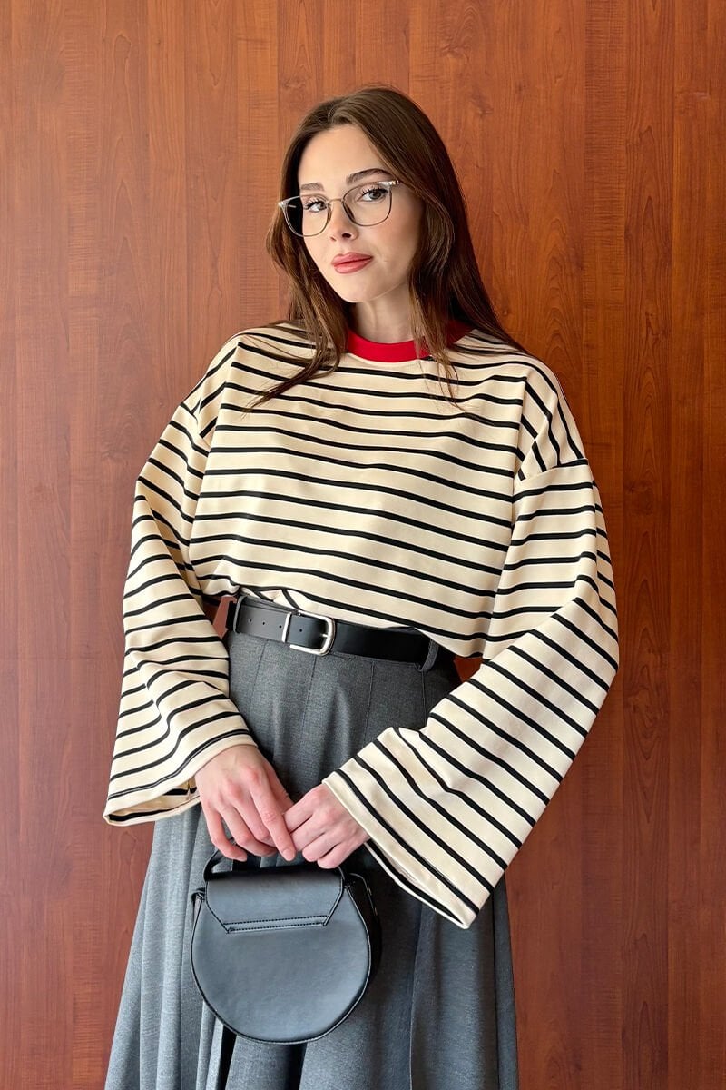 Kırmızı Yaka Siyah Çizgili Body
