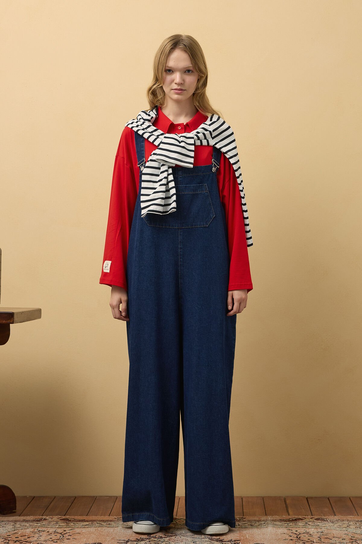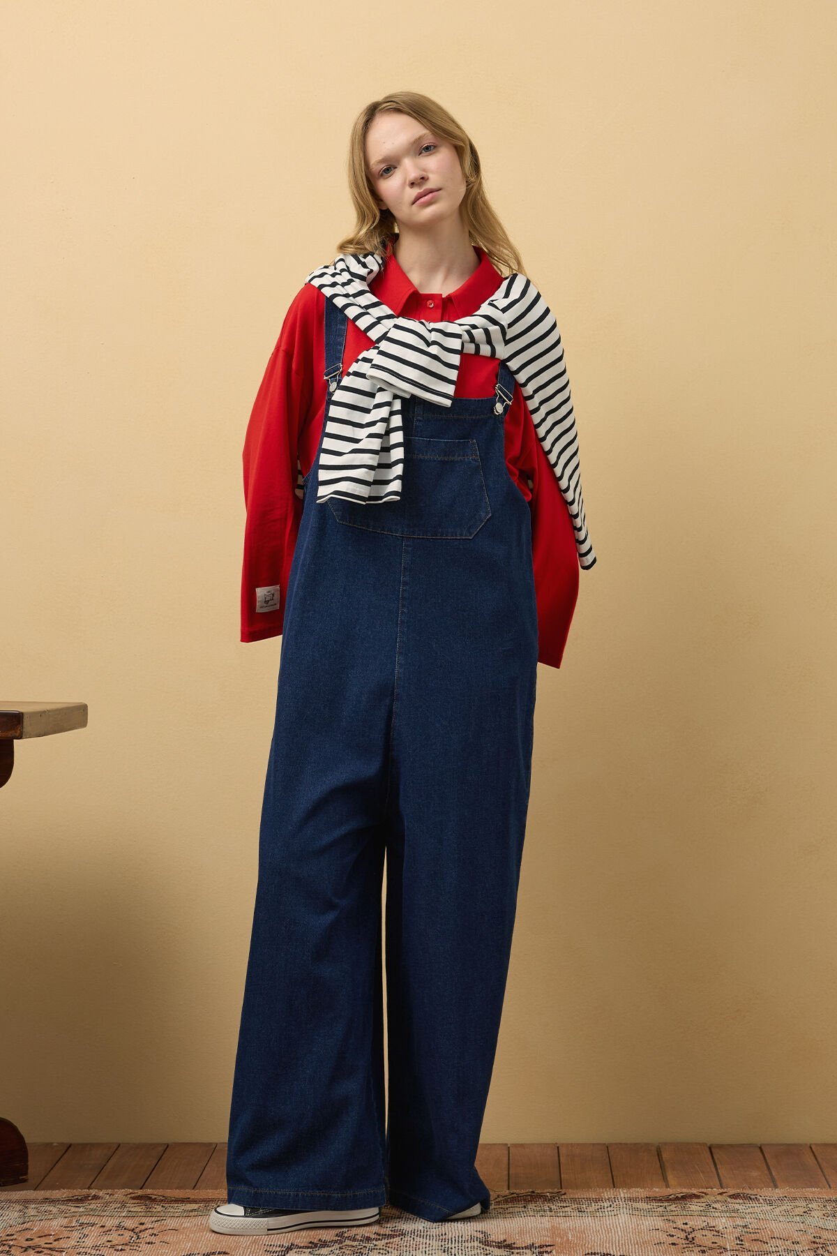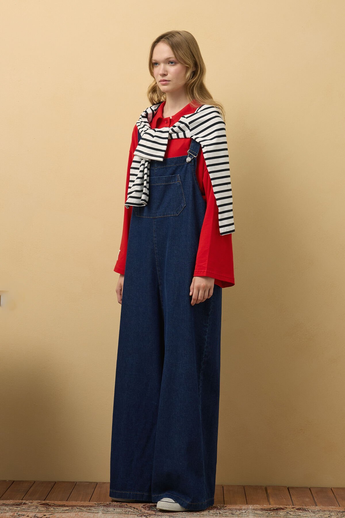 Bu tulum , kaliteli kot kumaşı ve şık tasarımıyla hem rahat hem de şık bir görünüm sunar.