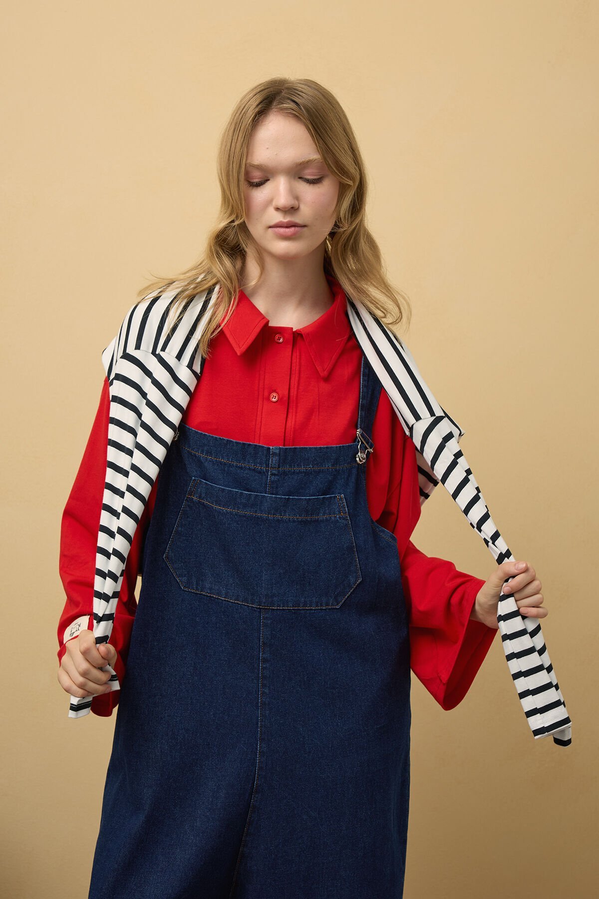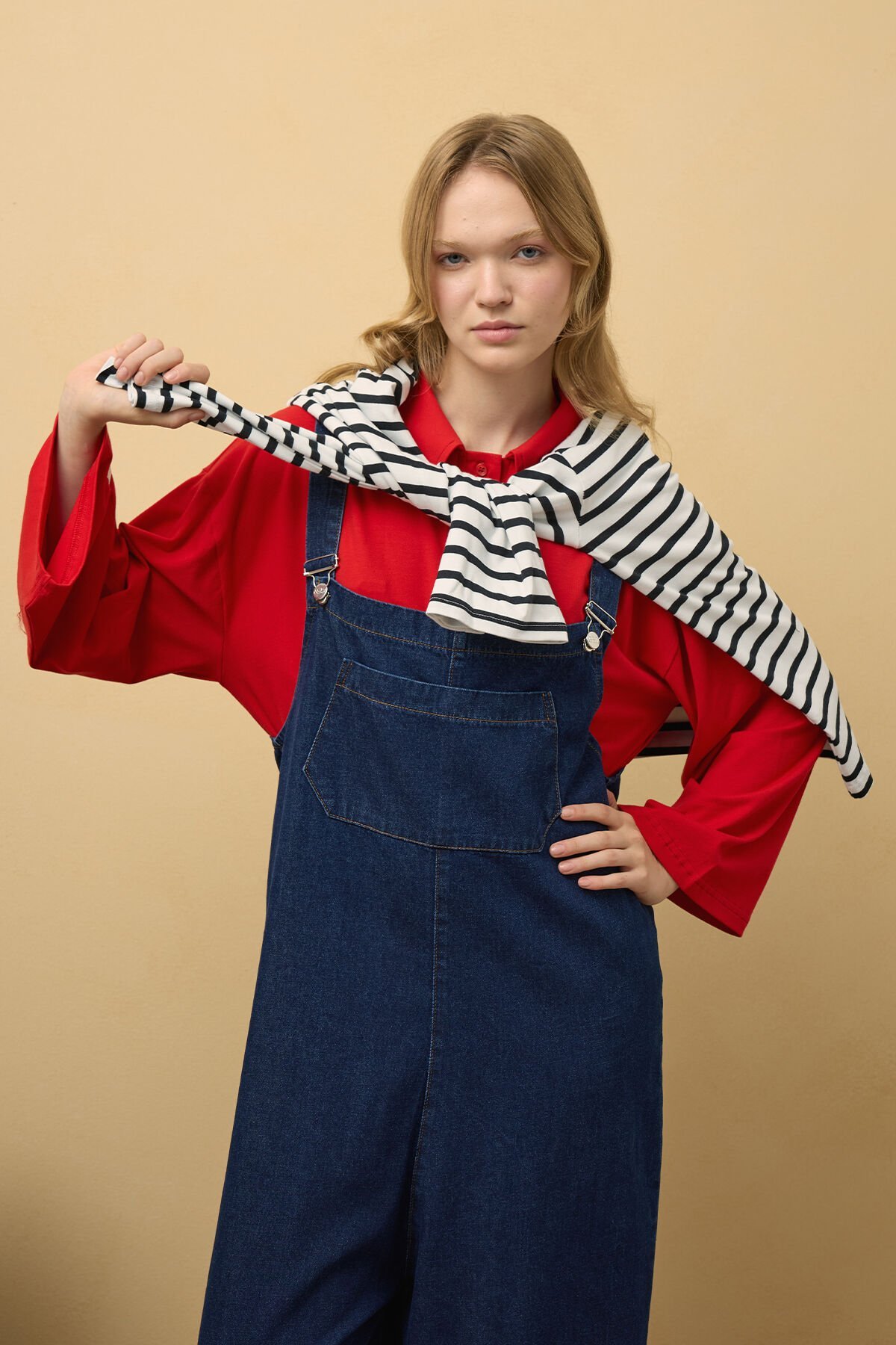 Kırmızı Süprem Polo Yaka Body & Kot Salopet Tulum