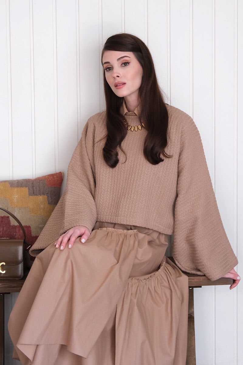 Karamel Yarasa Kol Triko Crop
