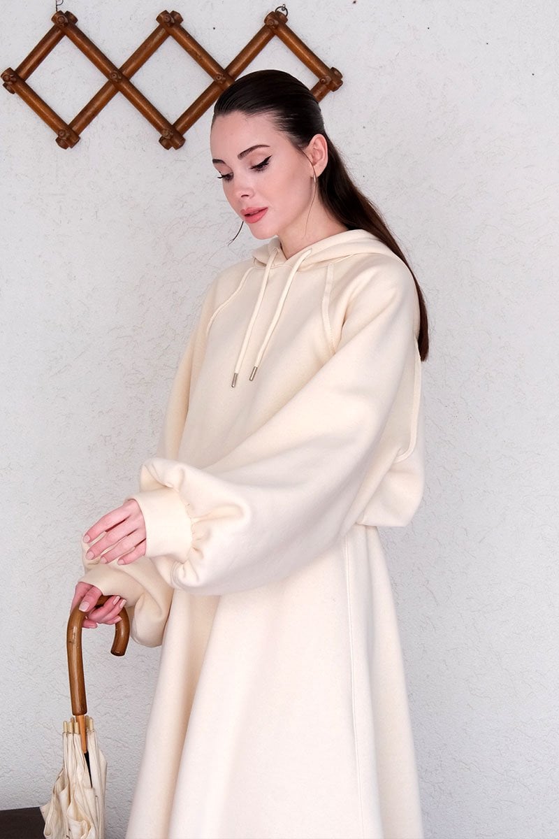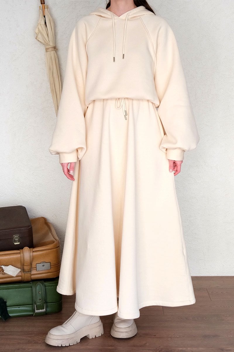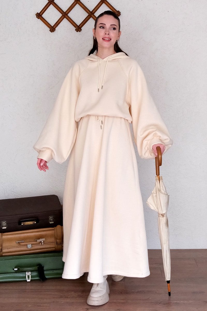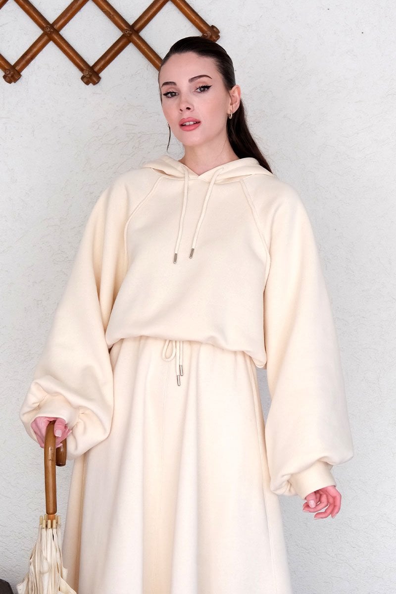 Krem 3 İplik Sweat & Etek Takım
