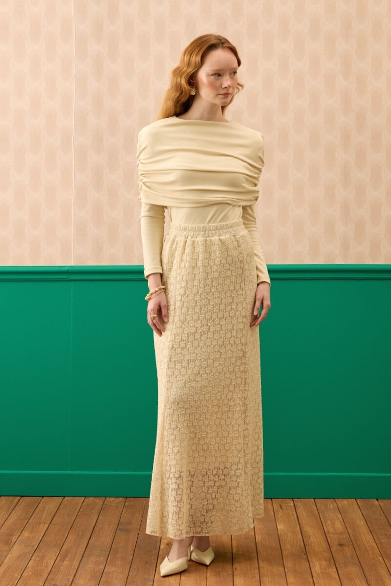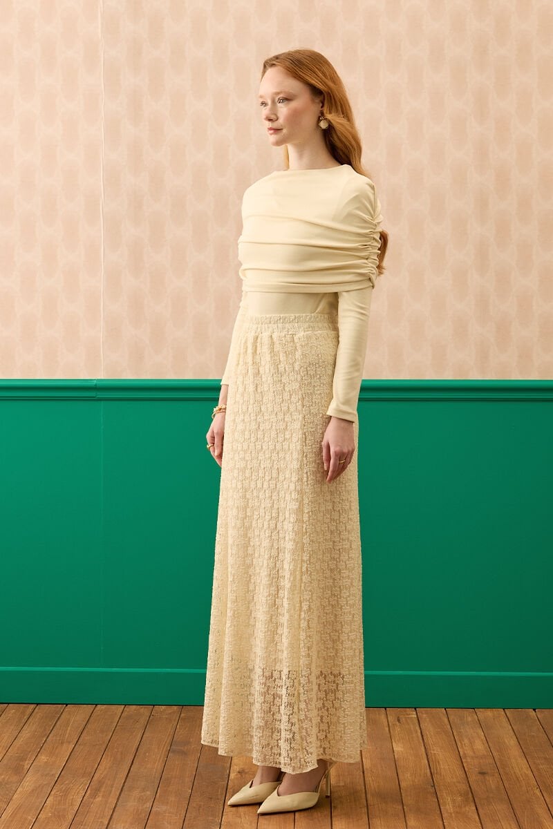 Dantelli kloş etek, zarafeti ve şıklığıyla dikkat çeker.