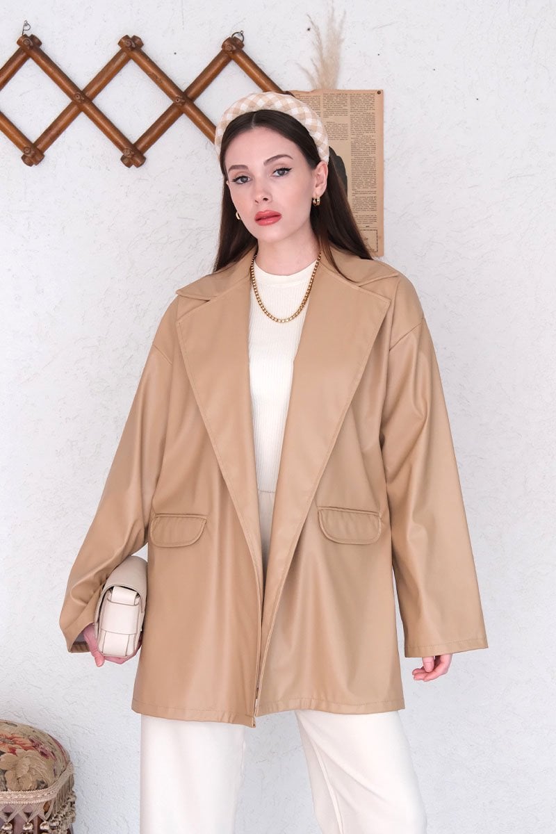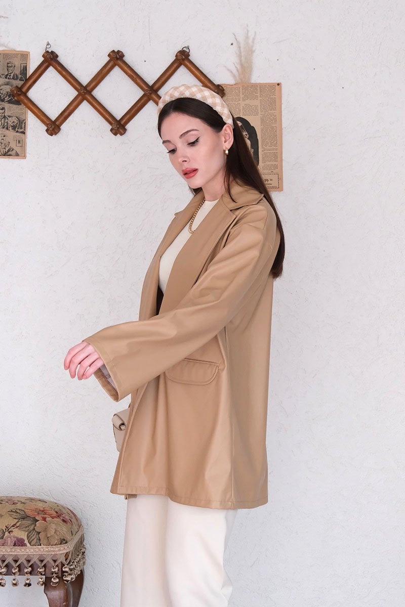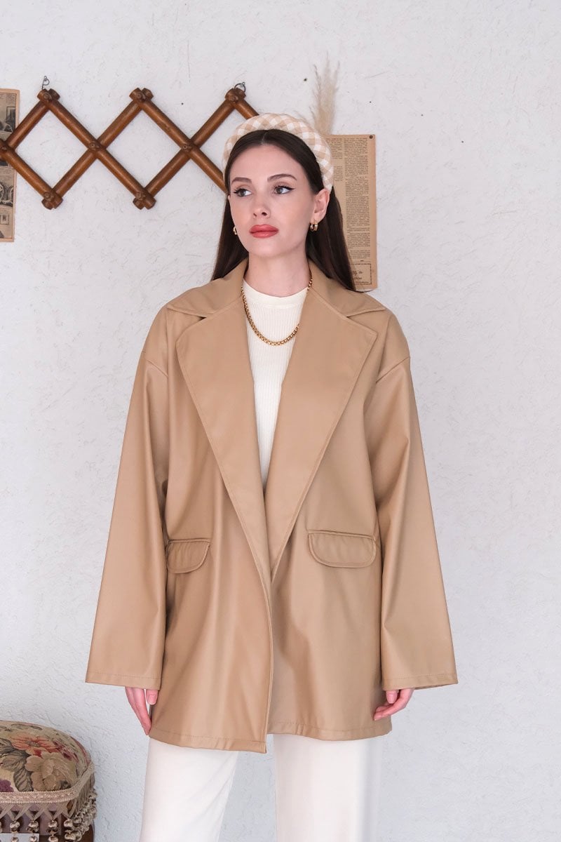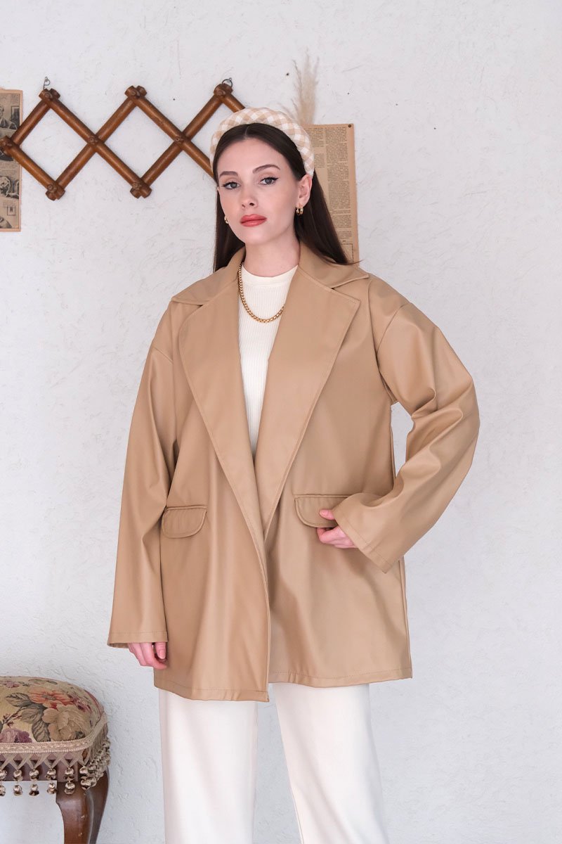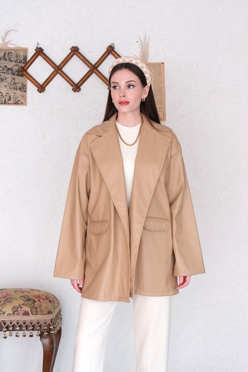 Krem Deri Ceket