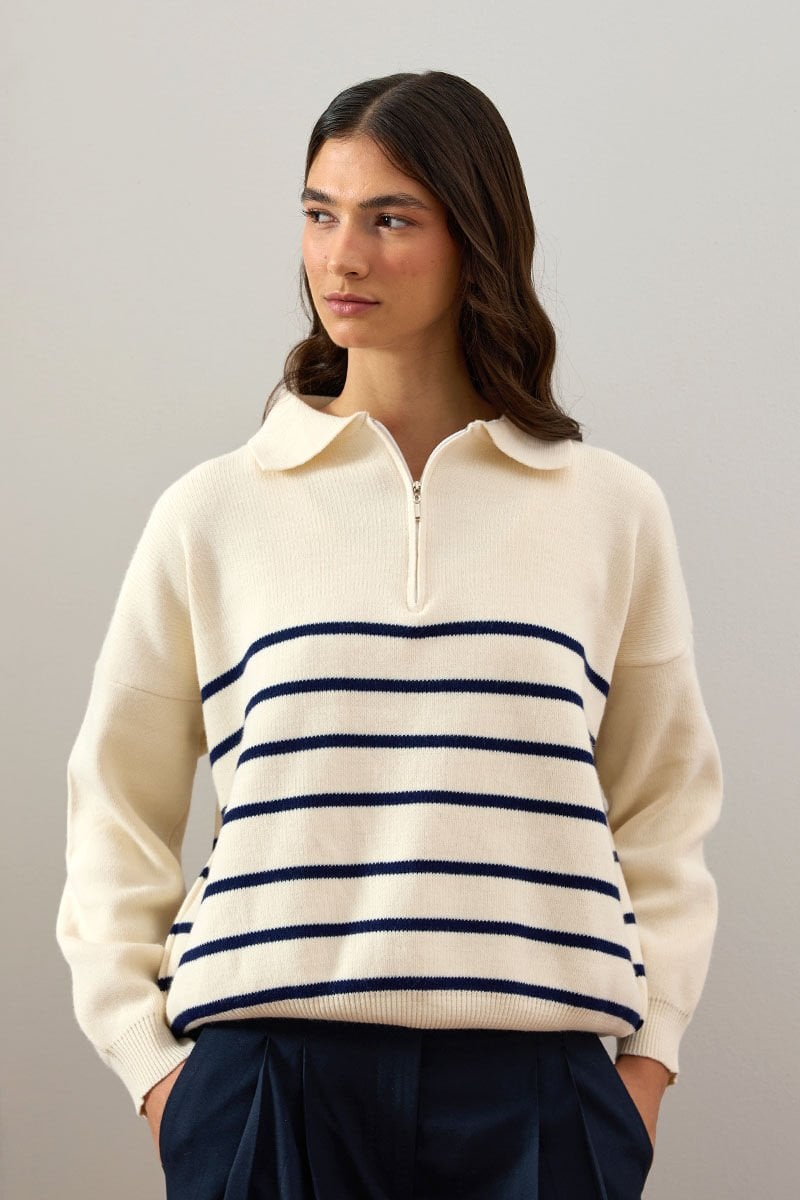Krem Çizgili Triko Kazak Ceylan Otantik'in seçimi Krem Çizgili Triko Kazak. Vintage ve tesettür kadın giyim şıklığı uygun fiyatlı parçalarla Kazak Koleksiyonu'nda! CEO000001499 Krem Çizgili Triko Kazak