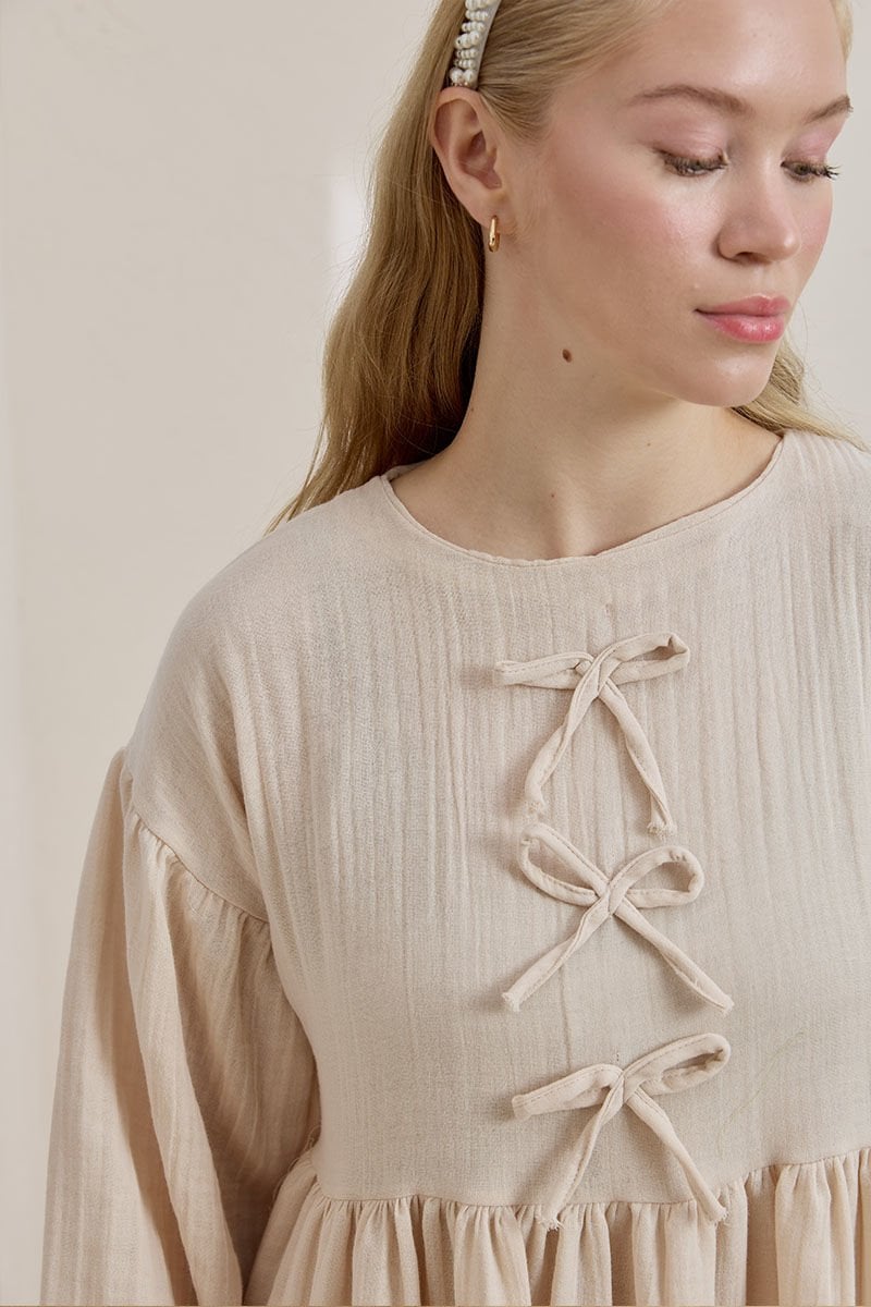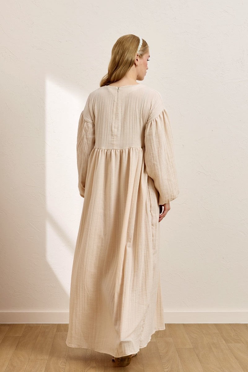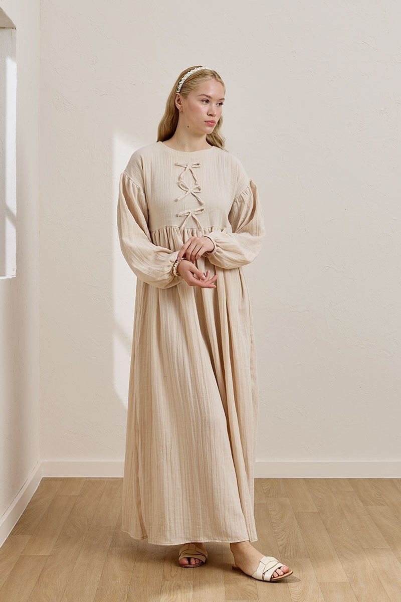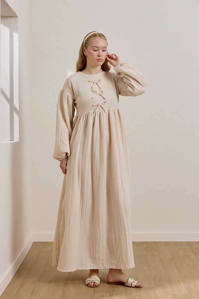 Krem Müslin Fiyonklu Belroba Elbise