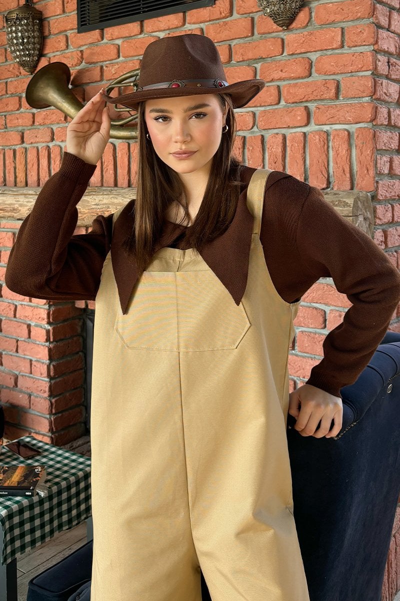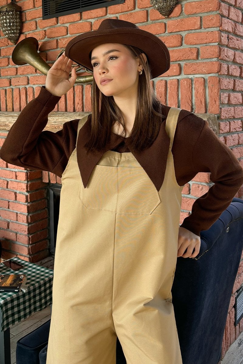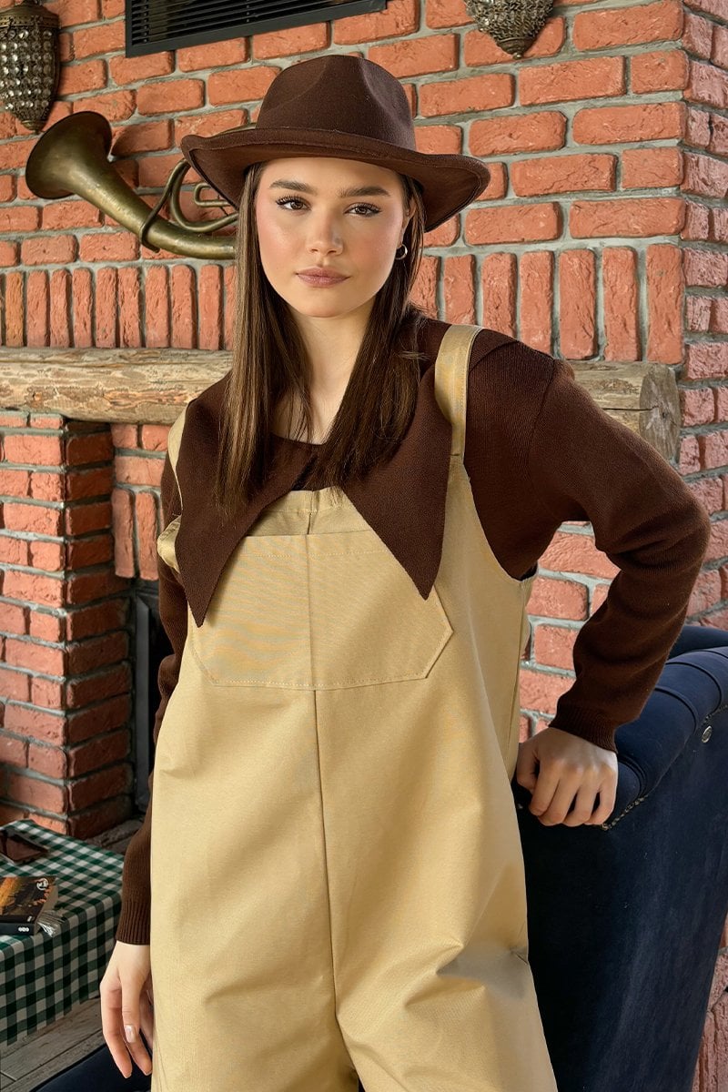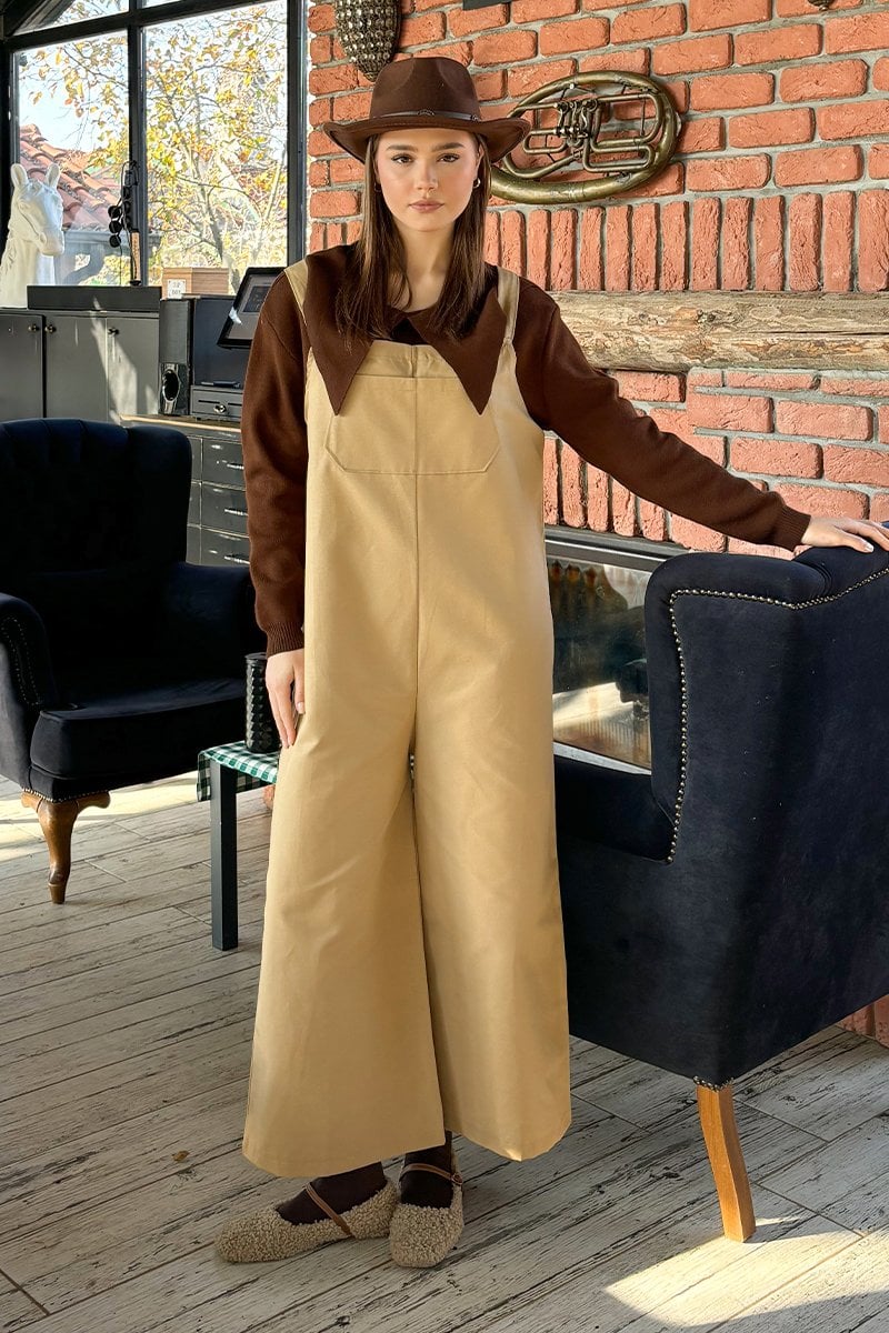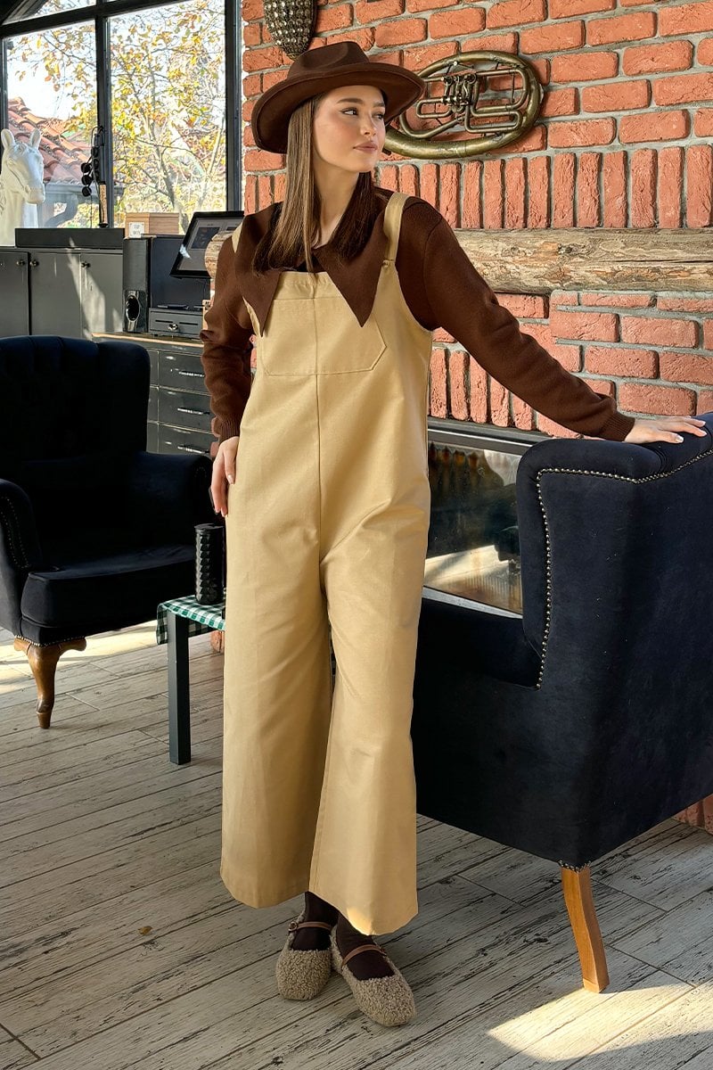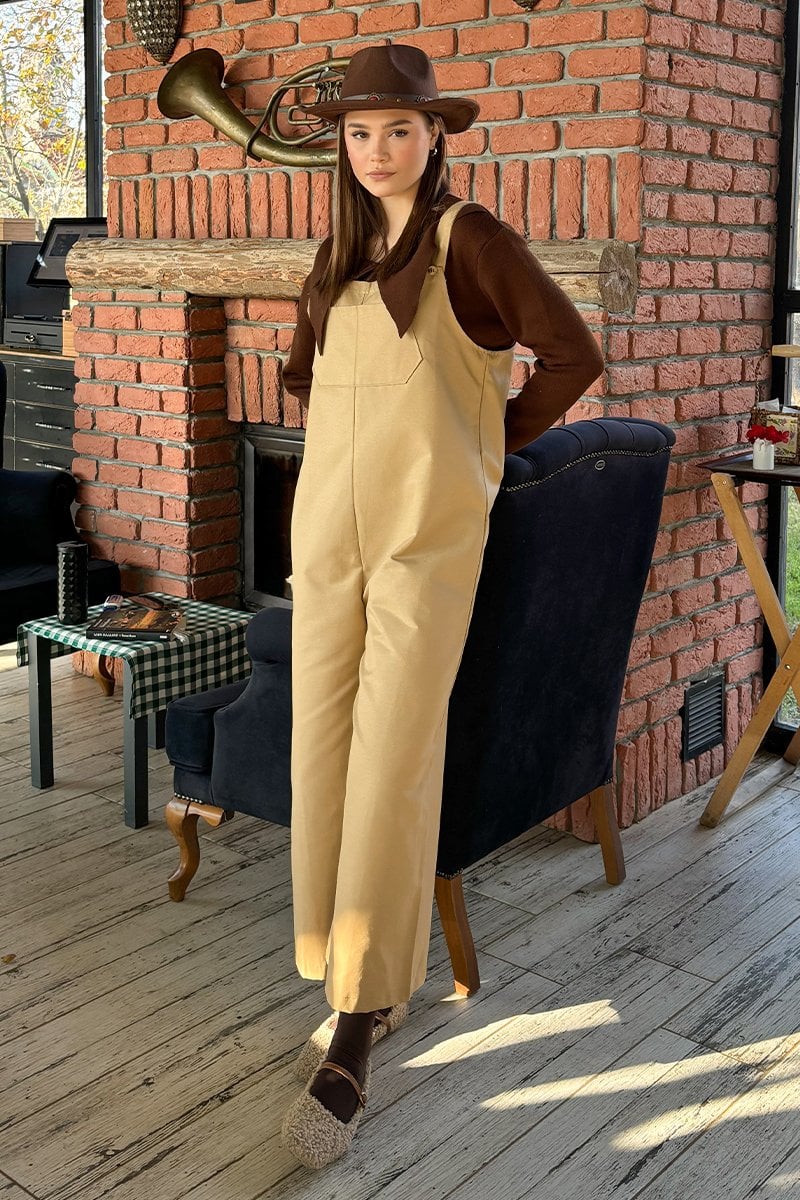 Sütlü Kahve Keten Salopet Tulum