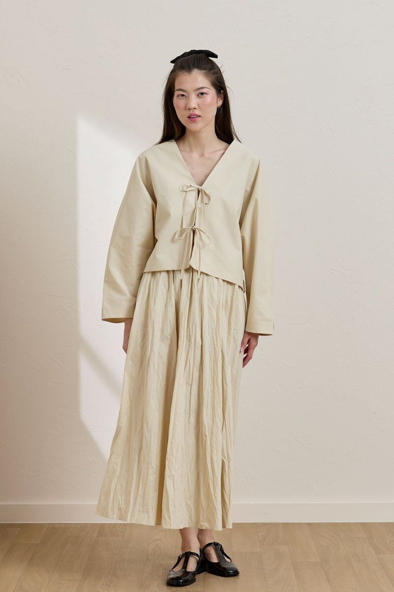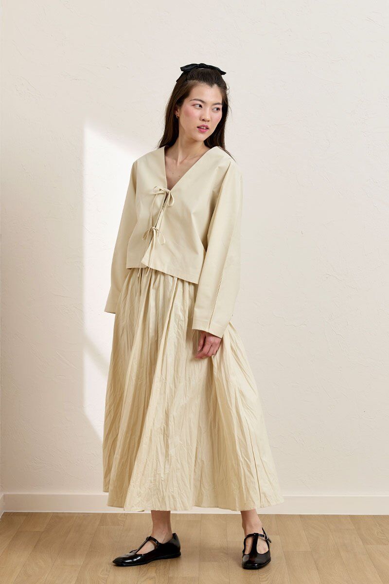 Krem Kraşlı Balon Etek