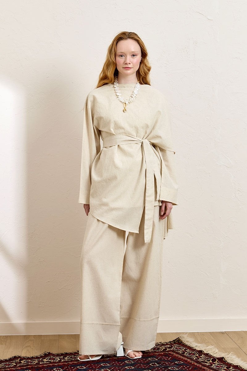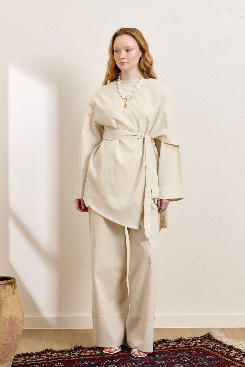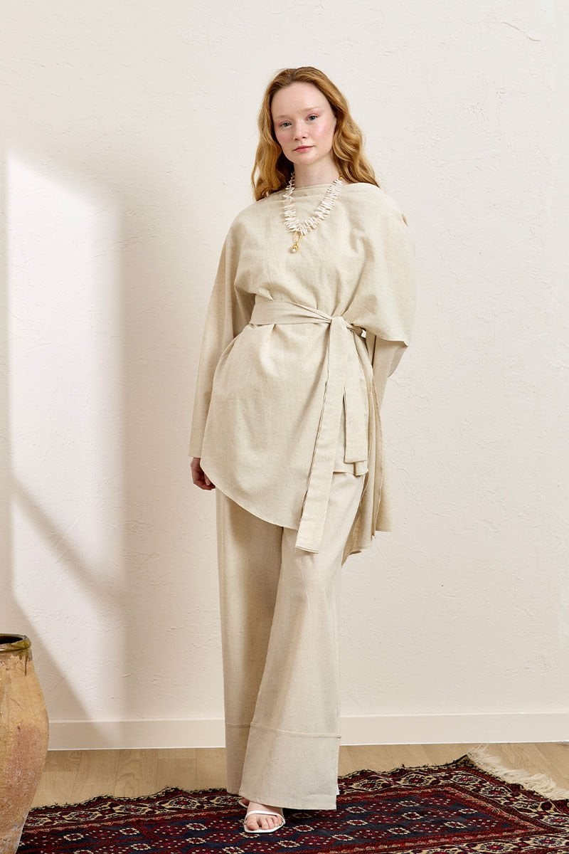 Krem Organik Keten Double Paça Pantolon