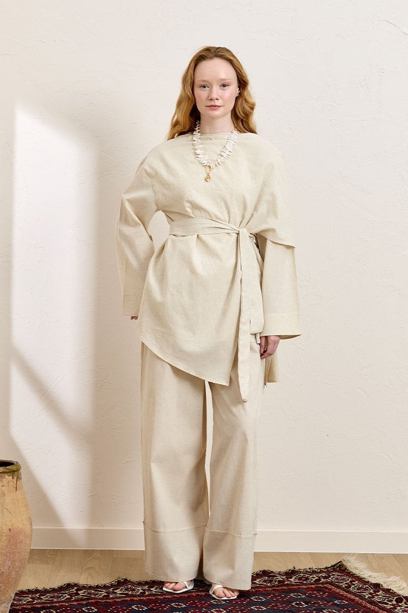 Krem Organik Keten Double Paça Pantolon