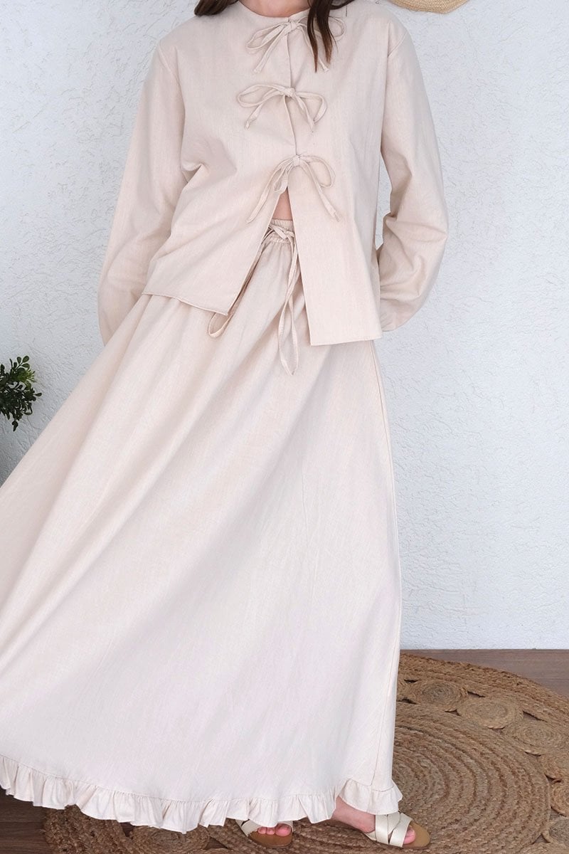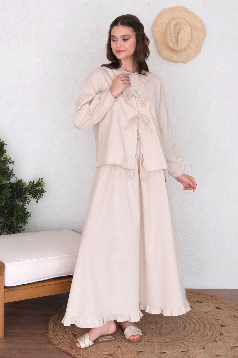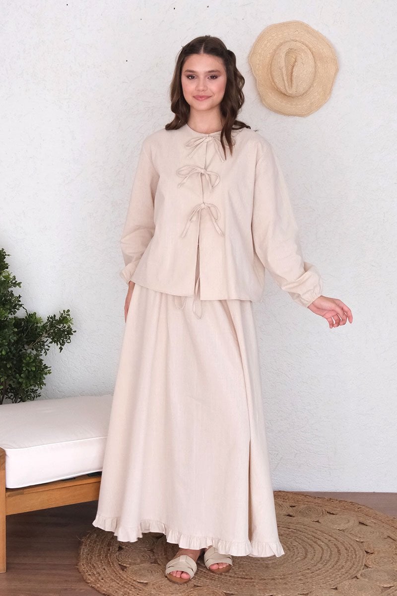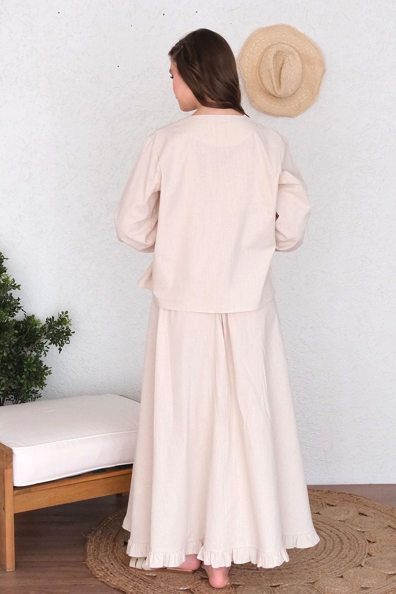 Krem Organik Keten Eteği Fırfırlı Etek