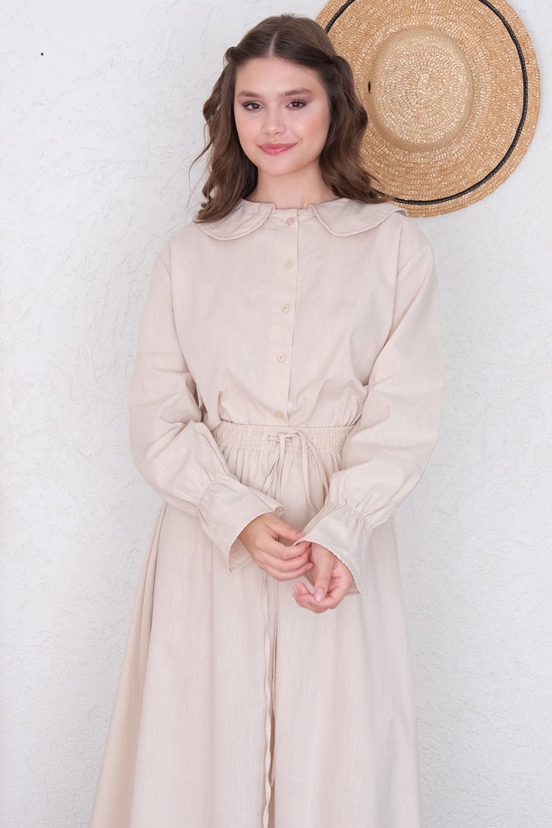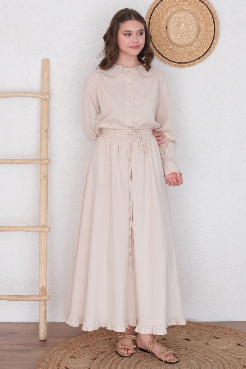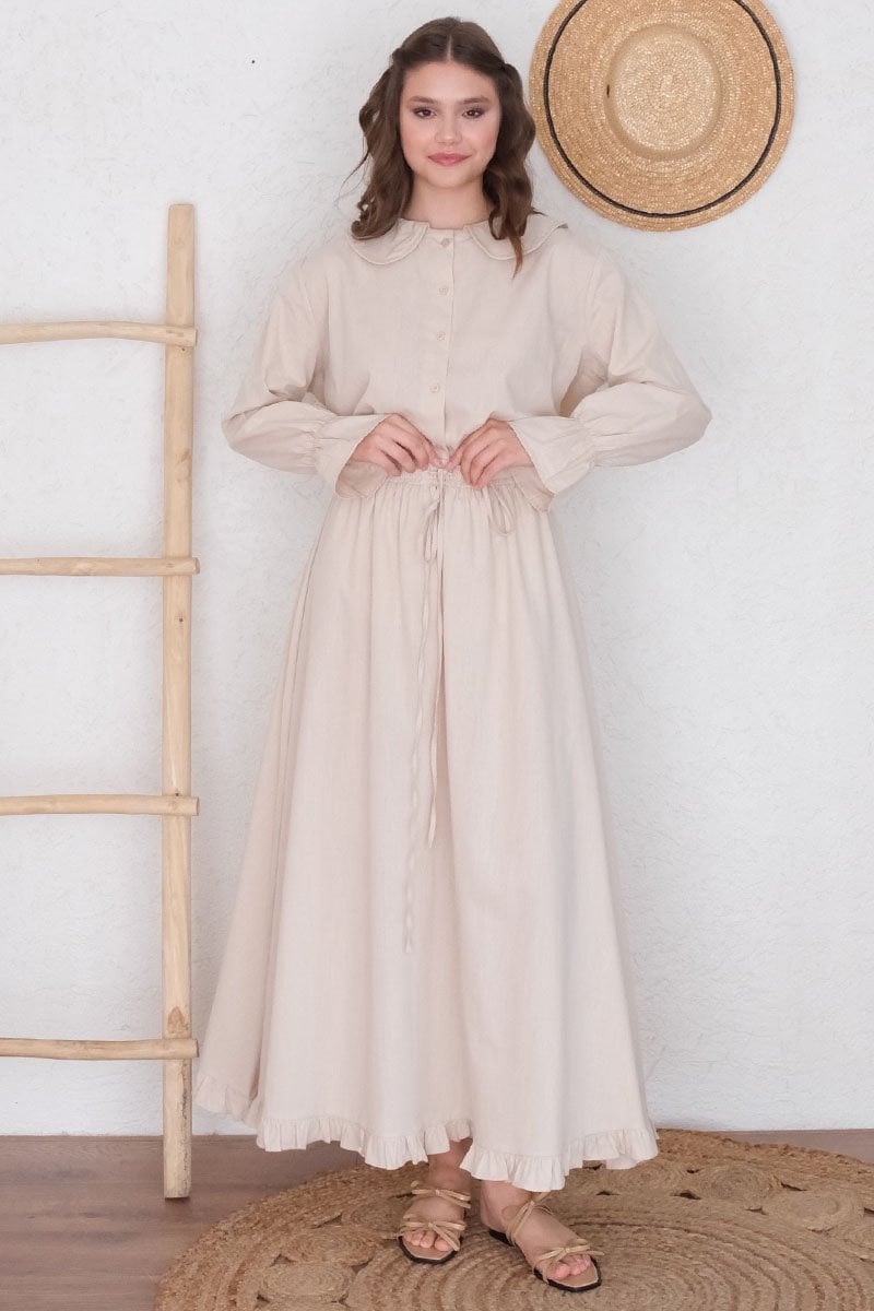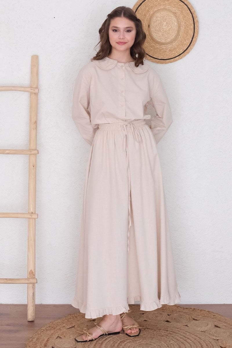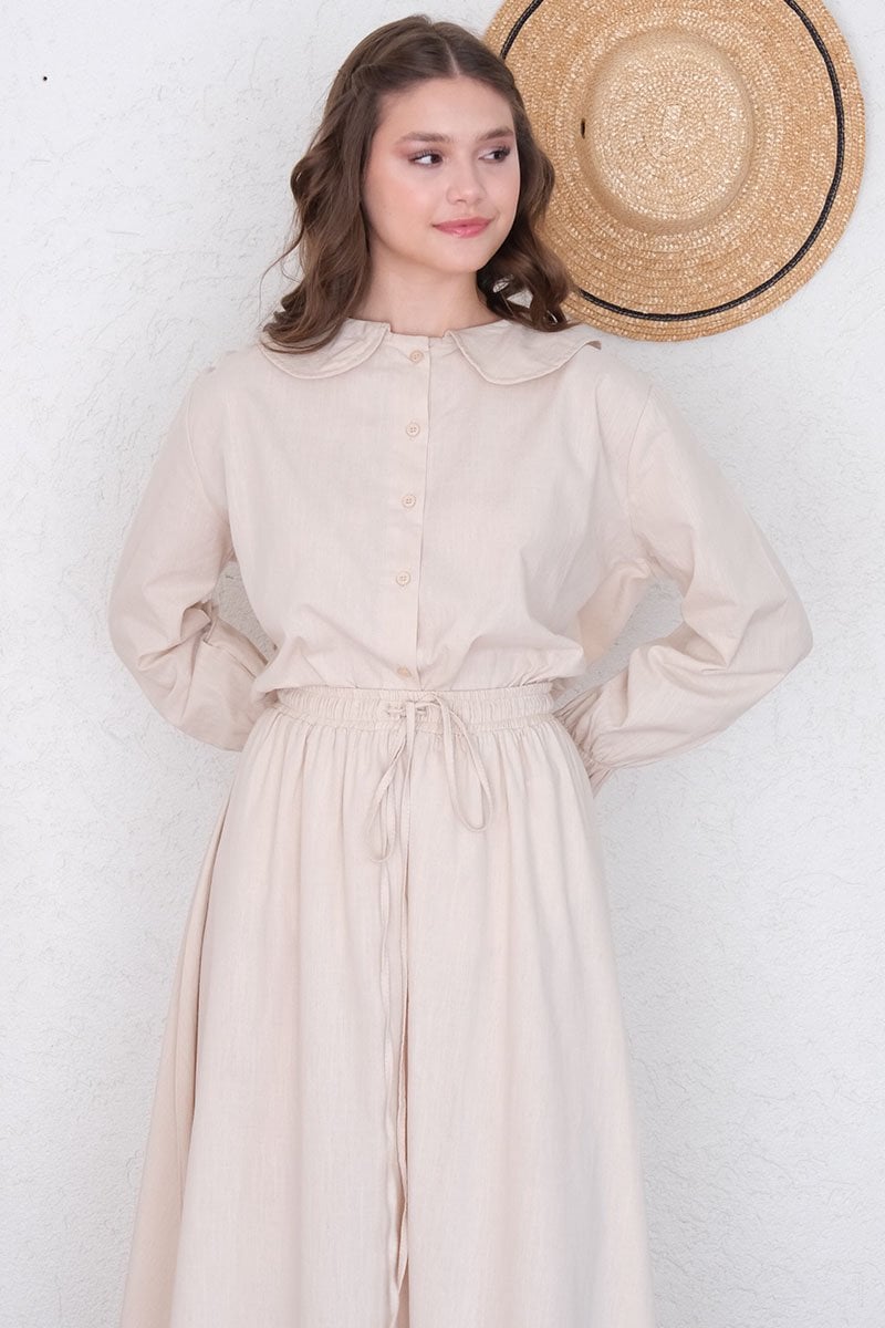 Krem Organik Keten Marul Kol Gömlek