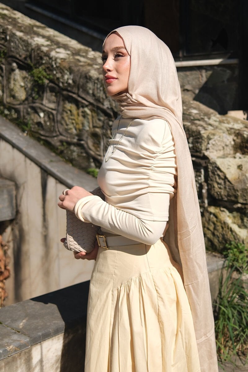 Krem Oysho Büzgü Detaylı Bluz