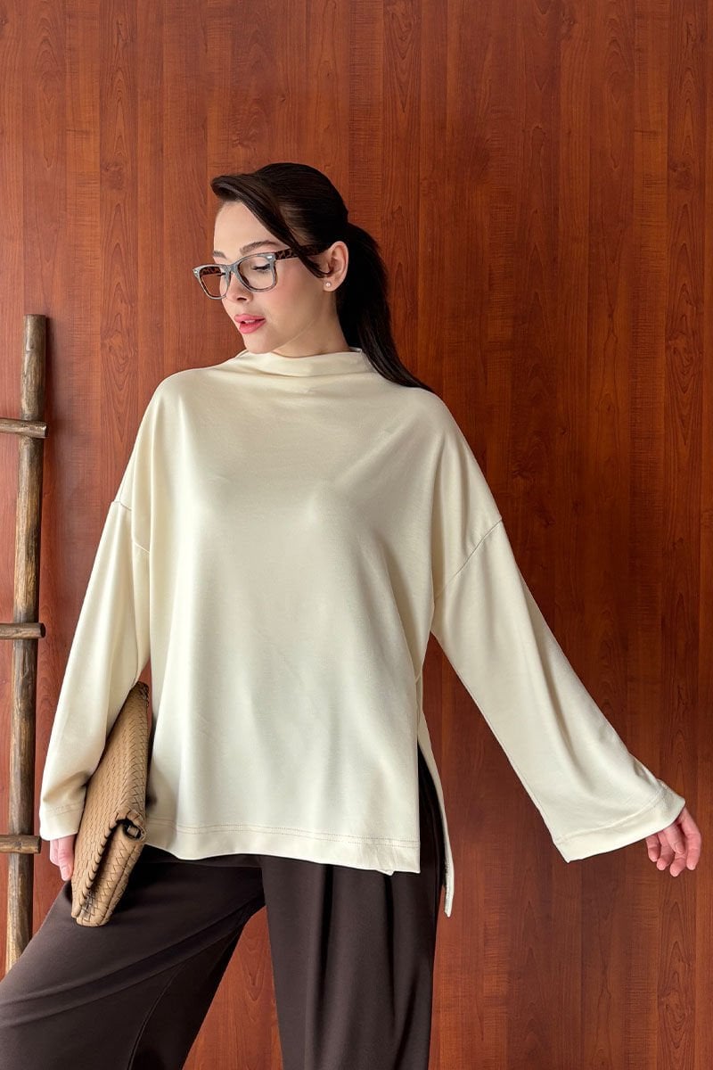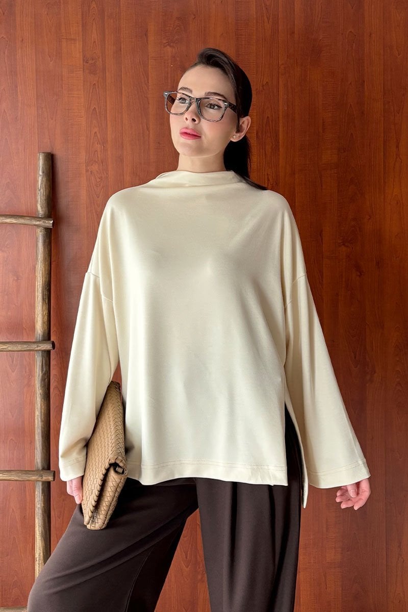 Krem Oysho Dik Yaka Bluz
