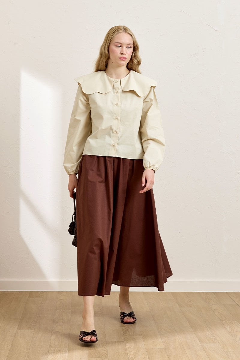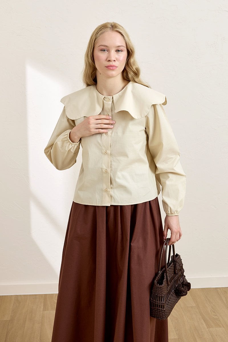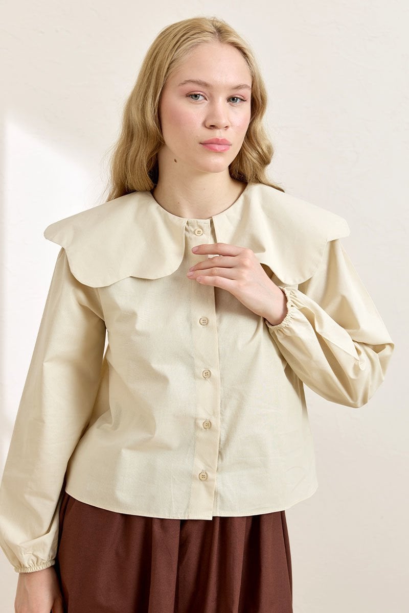 Krem Papatya Yaka Crop Gömlek