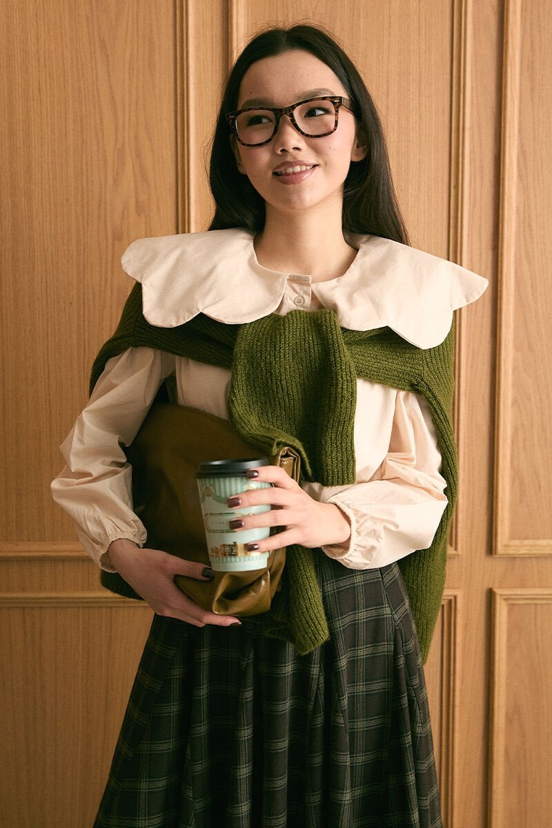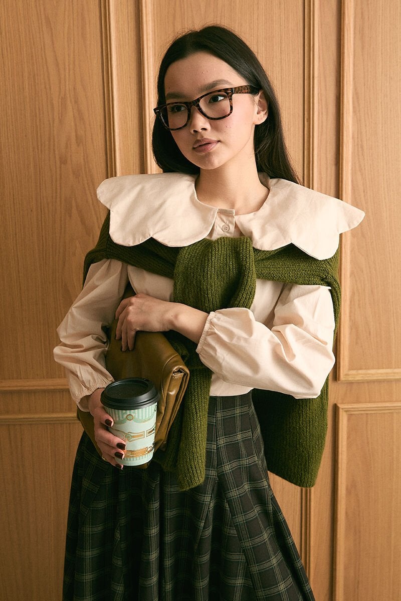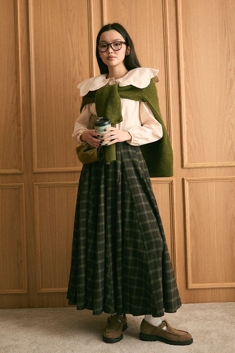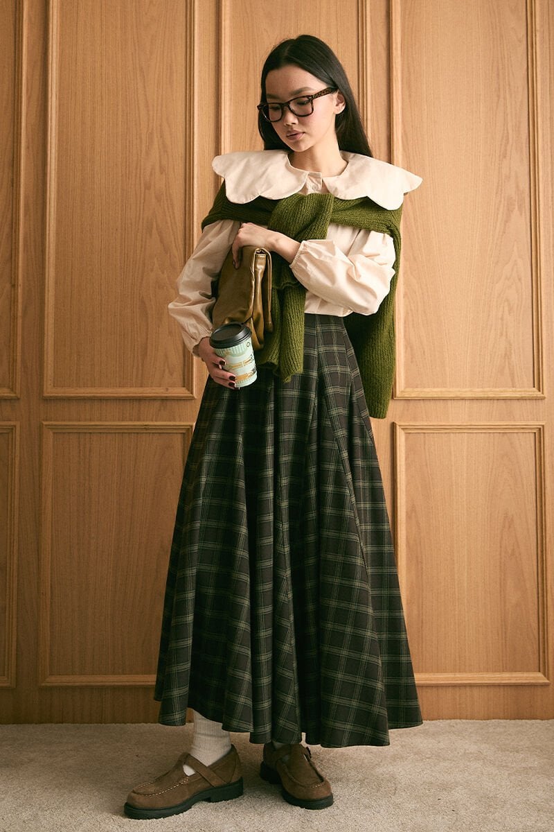 Krem Papatya Yaka Crop Gömlek & Acı Kahve Ekose Parçalı Etek Takım