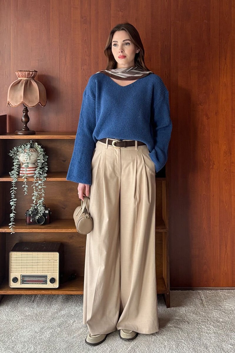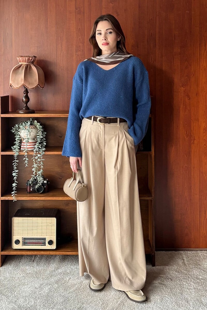 Vizon Pile Detay Palazzo Pantolon