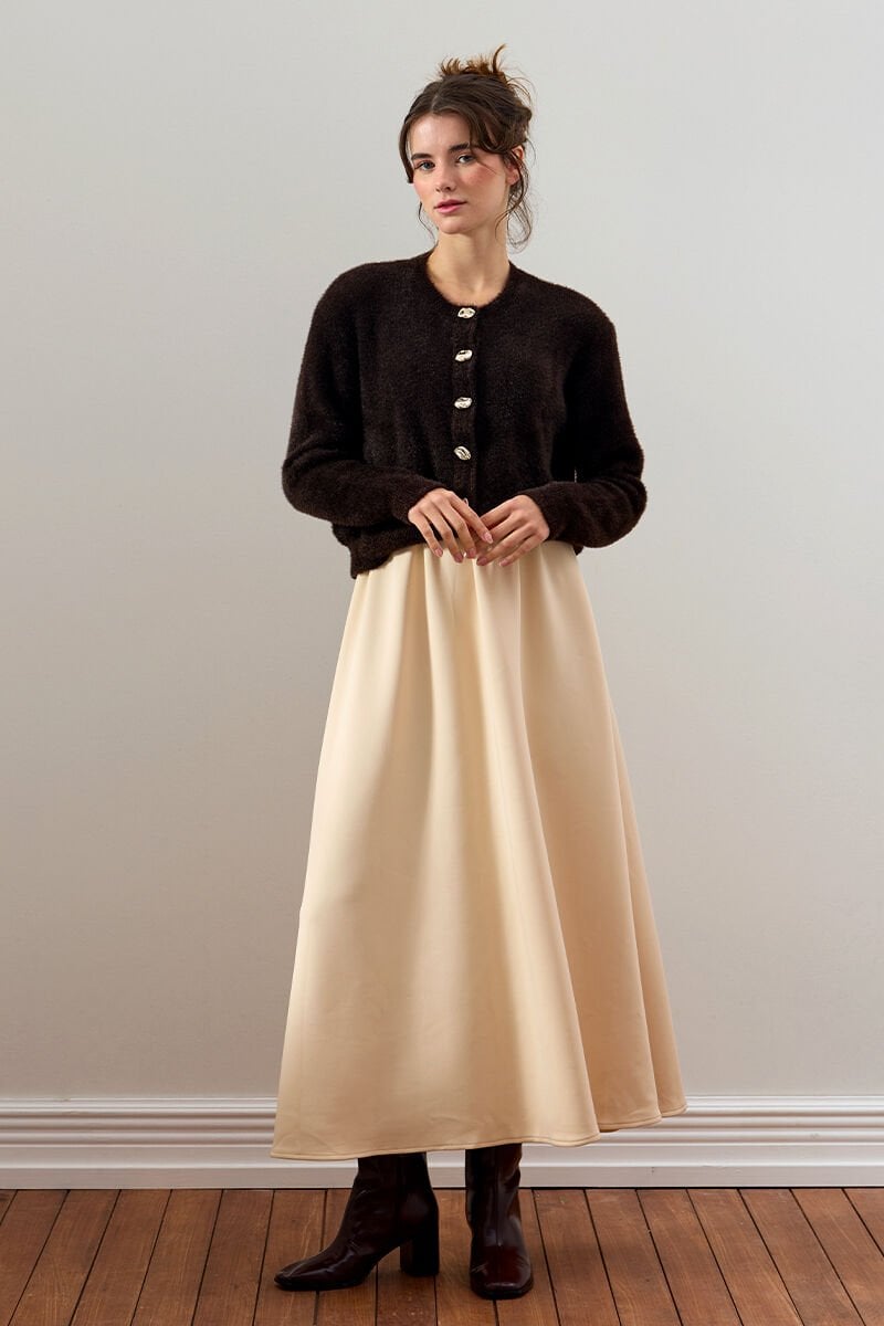 Yüksek kaliteli scuba kumaştan üretilmiş olan bu etek, her türlü etkinlikte şıklığınızı ve konforunuzu ön plana çıkaracak.