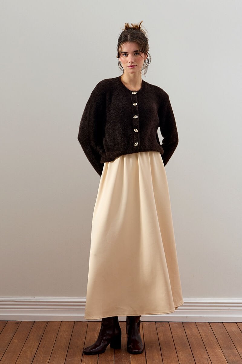 Farklı renk seçenekleriyle her tarza hitap eden bu etek, gardırobunuzun vazgeçilmez parçalarından biri olmaya aday.