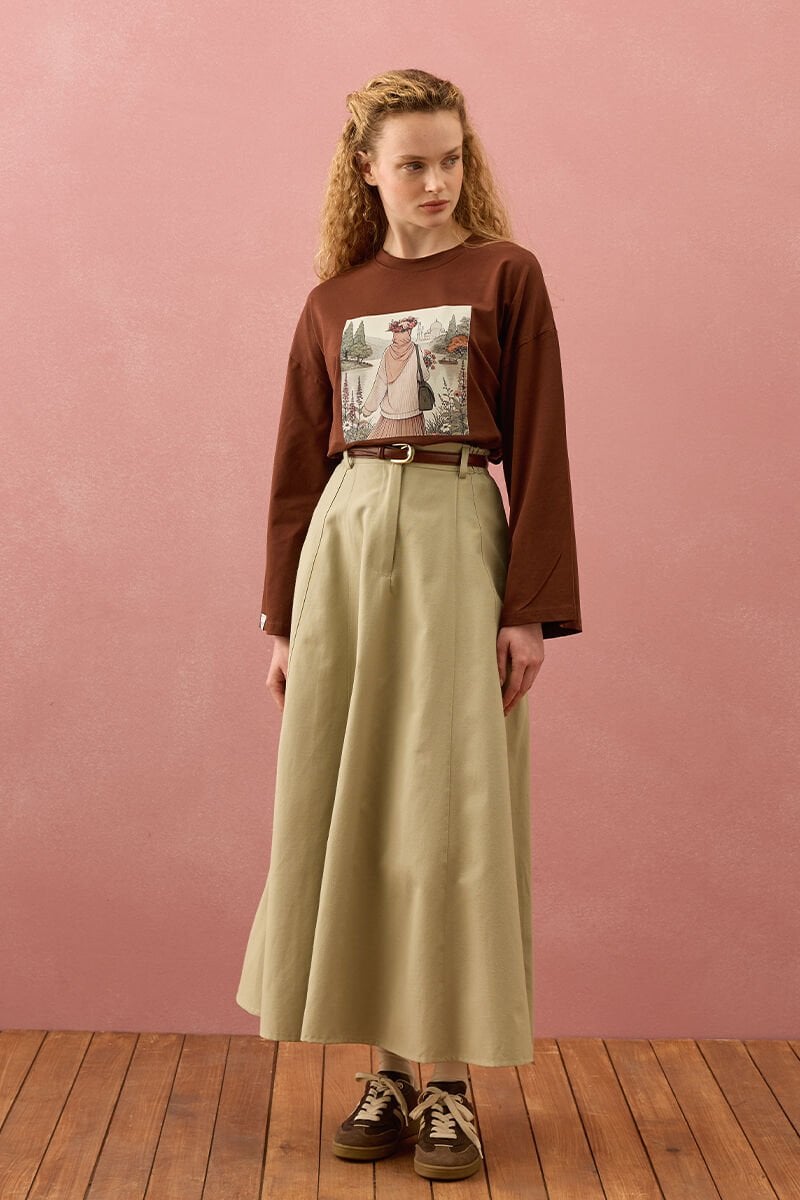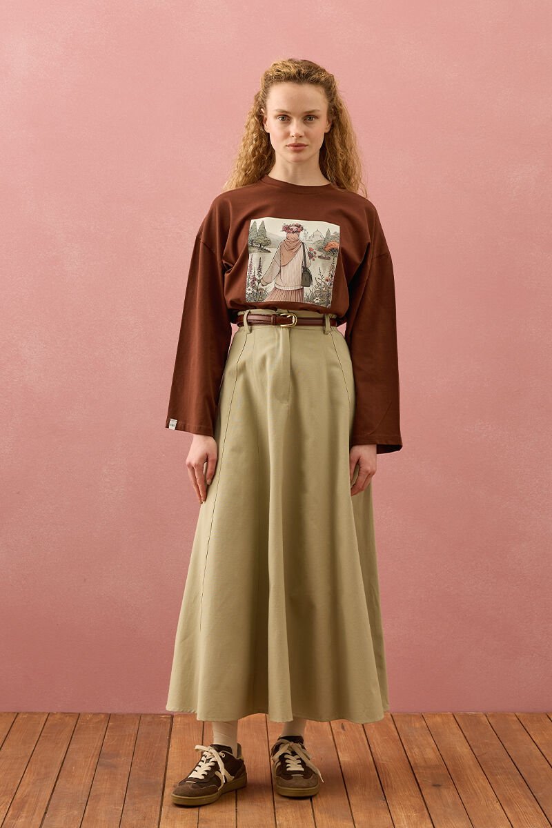 Küf Yeşili Keten Kloş Etek