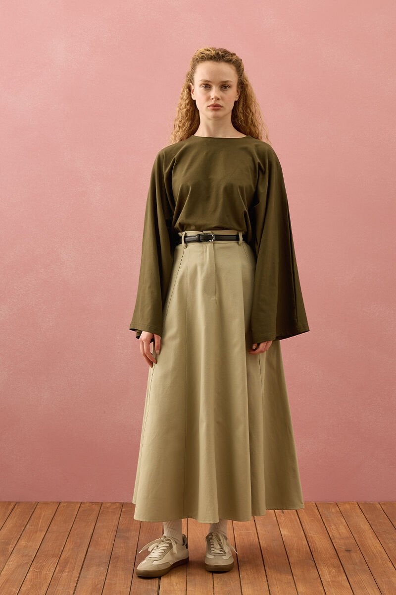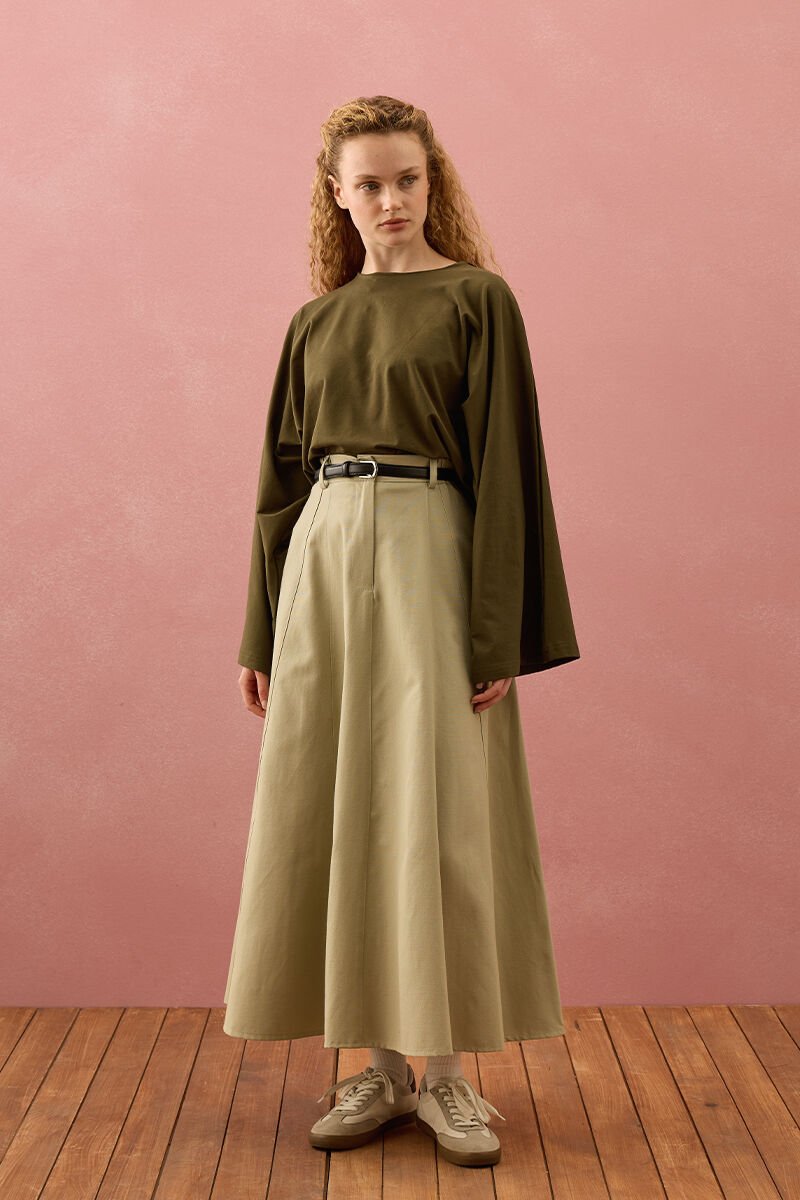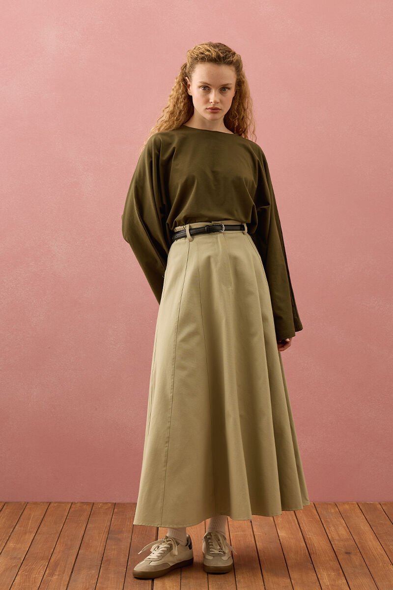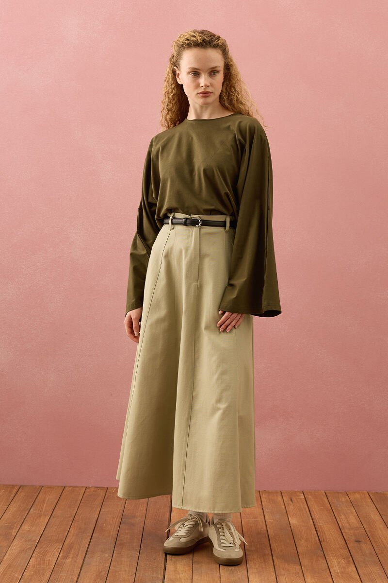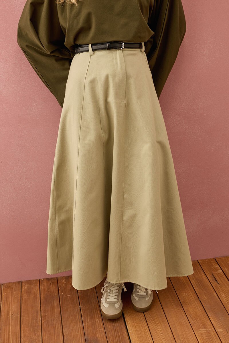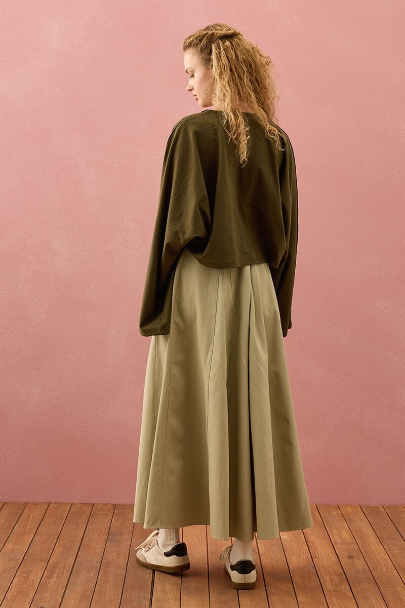 Küf Yeşili Keten Kloş Etek