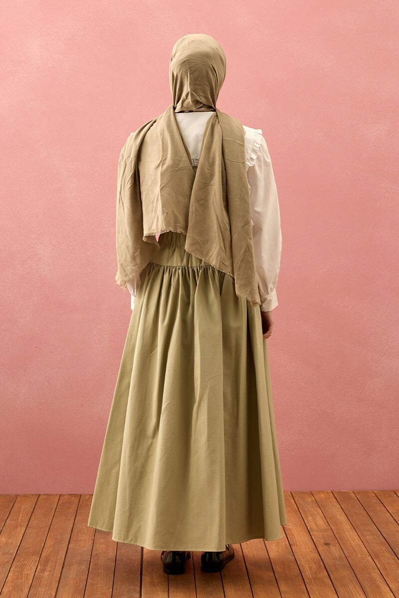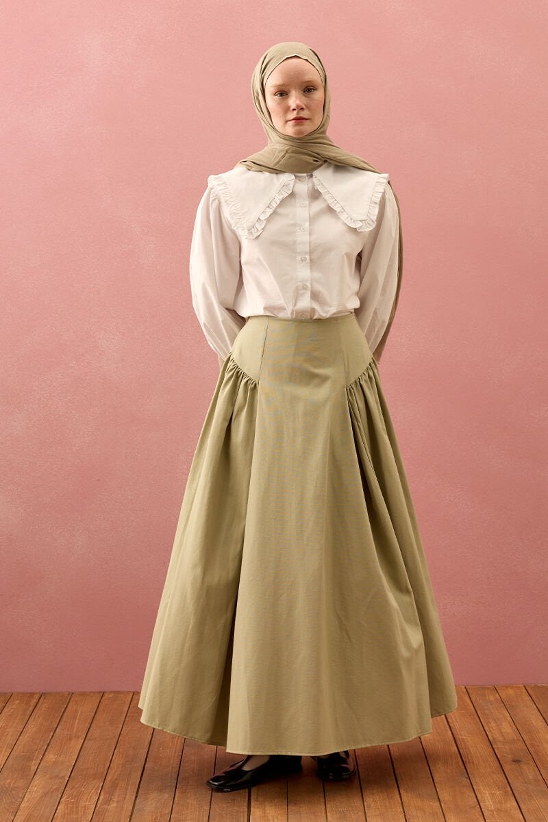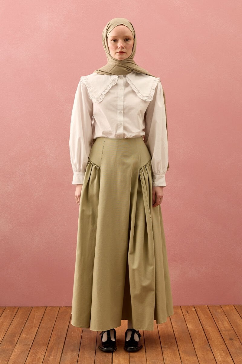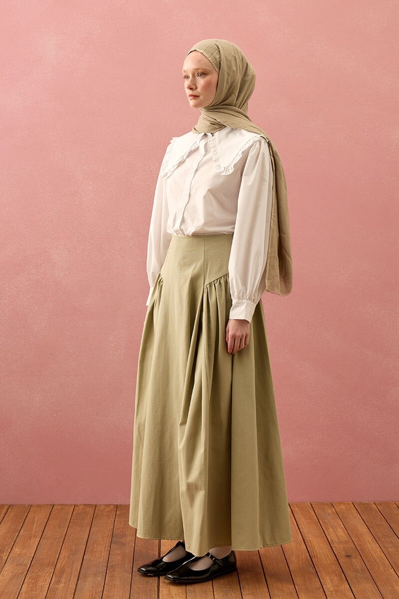 Küf Yeşili Keten Pile Detay Etek