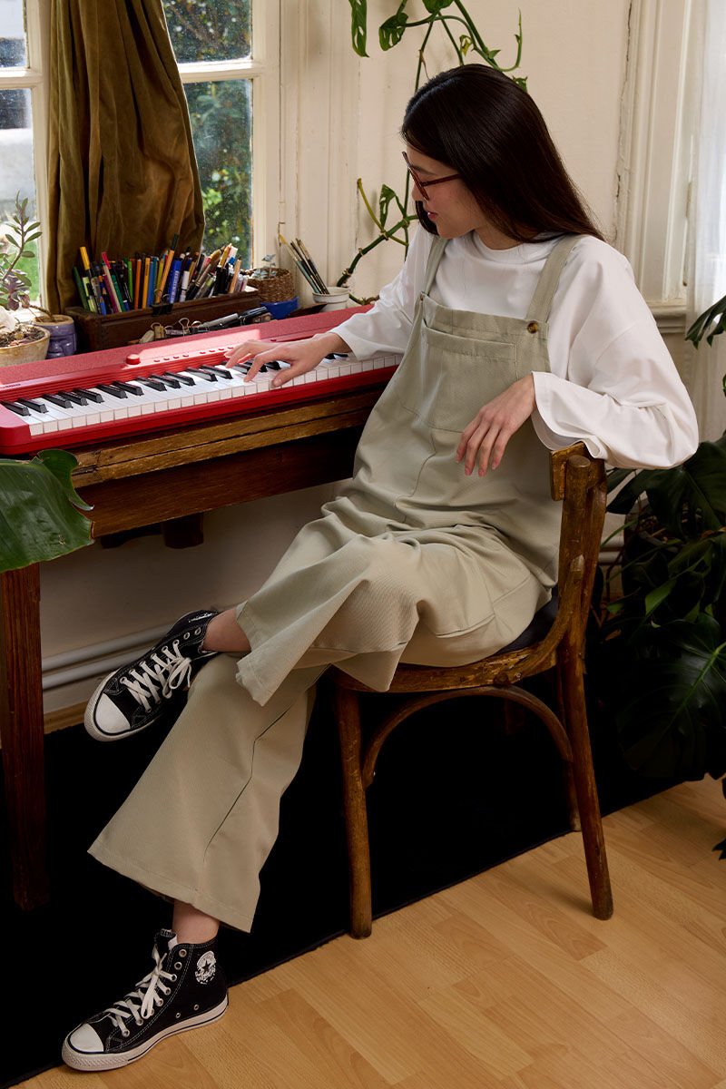 Küf Yeşili Keten Salopet Tulum & Ekru Body Takım