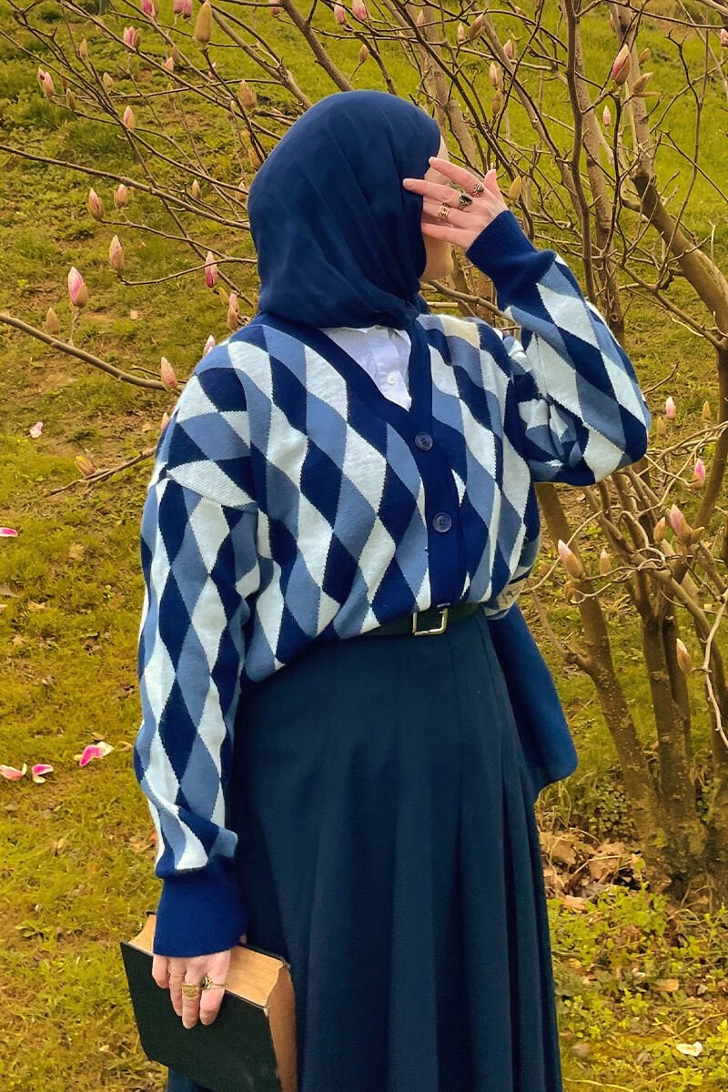 Şıklığı ve rahatlığı bir arada sunan Baklava Desenli Triko Hırka, her garderopa zarif dokunuş katar.
