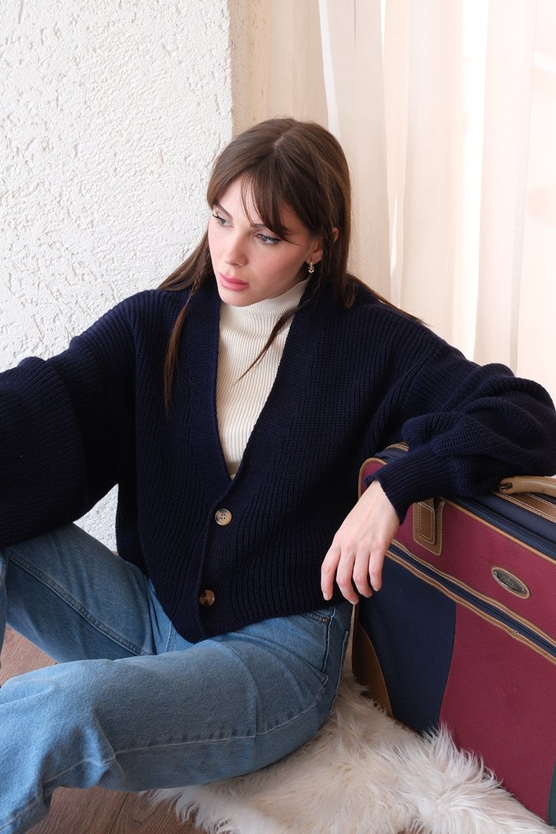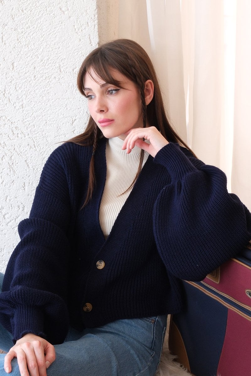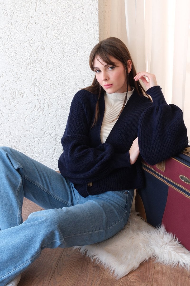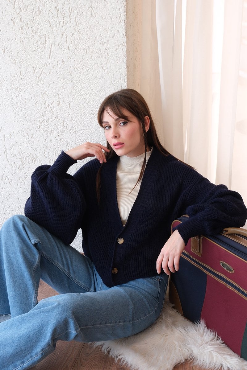 Lacivert Balon Kol Triko Hırka