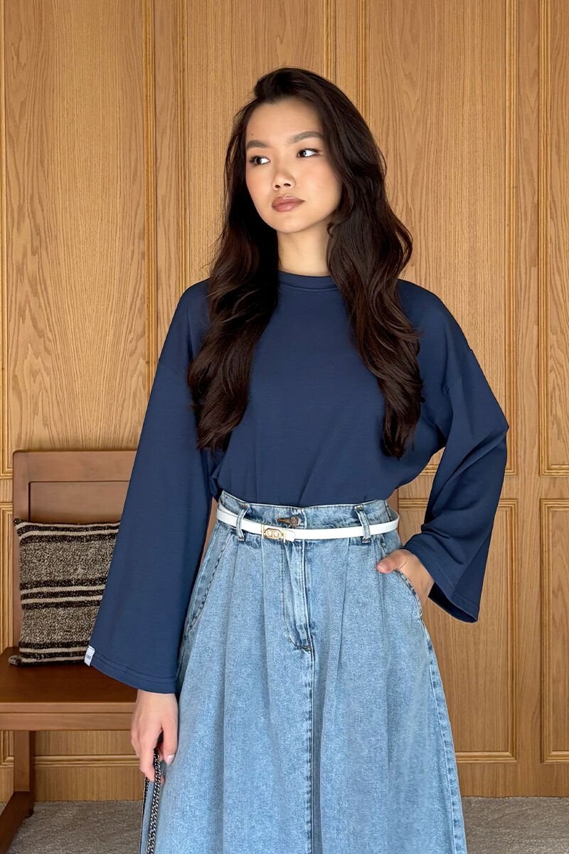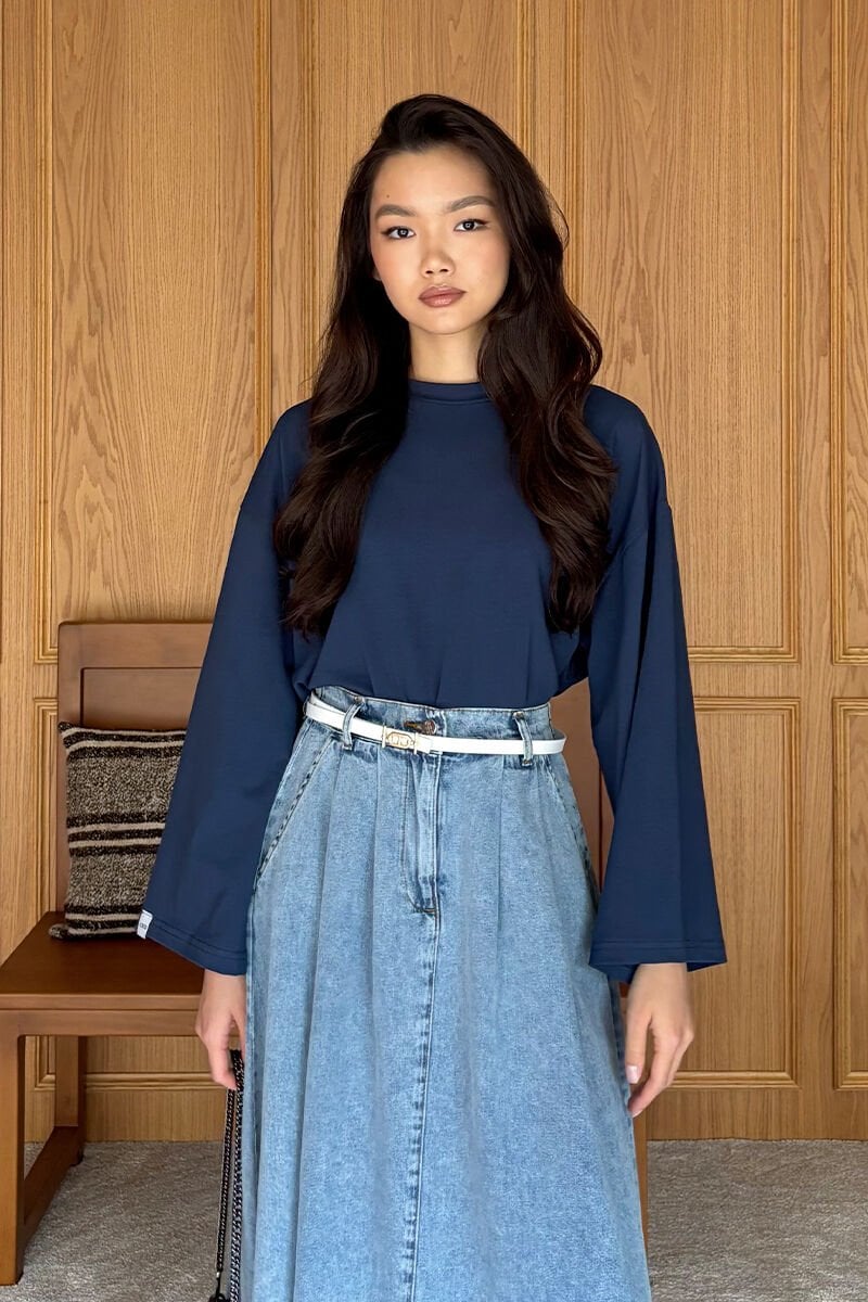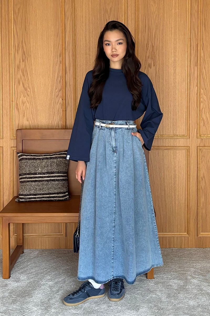 Lacivert Body & Buz Mavi Kot Tek Düğmeli Etek Takım