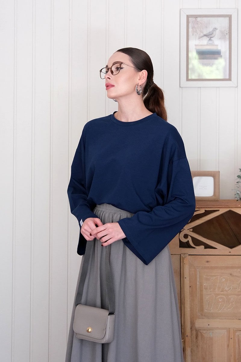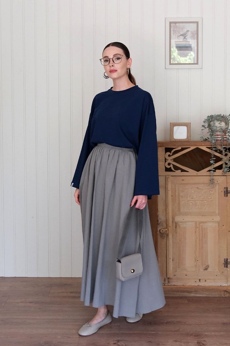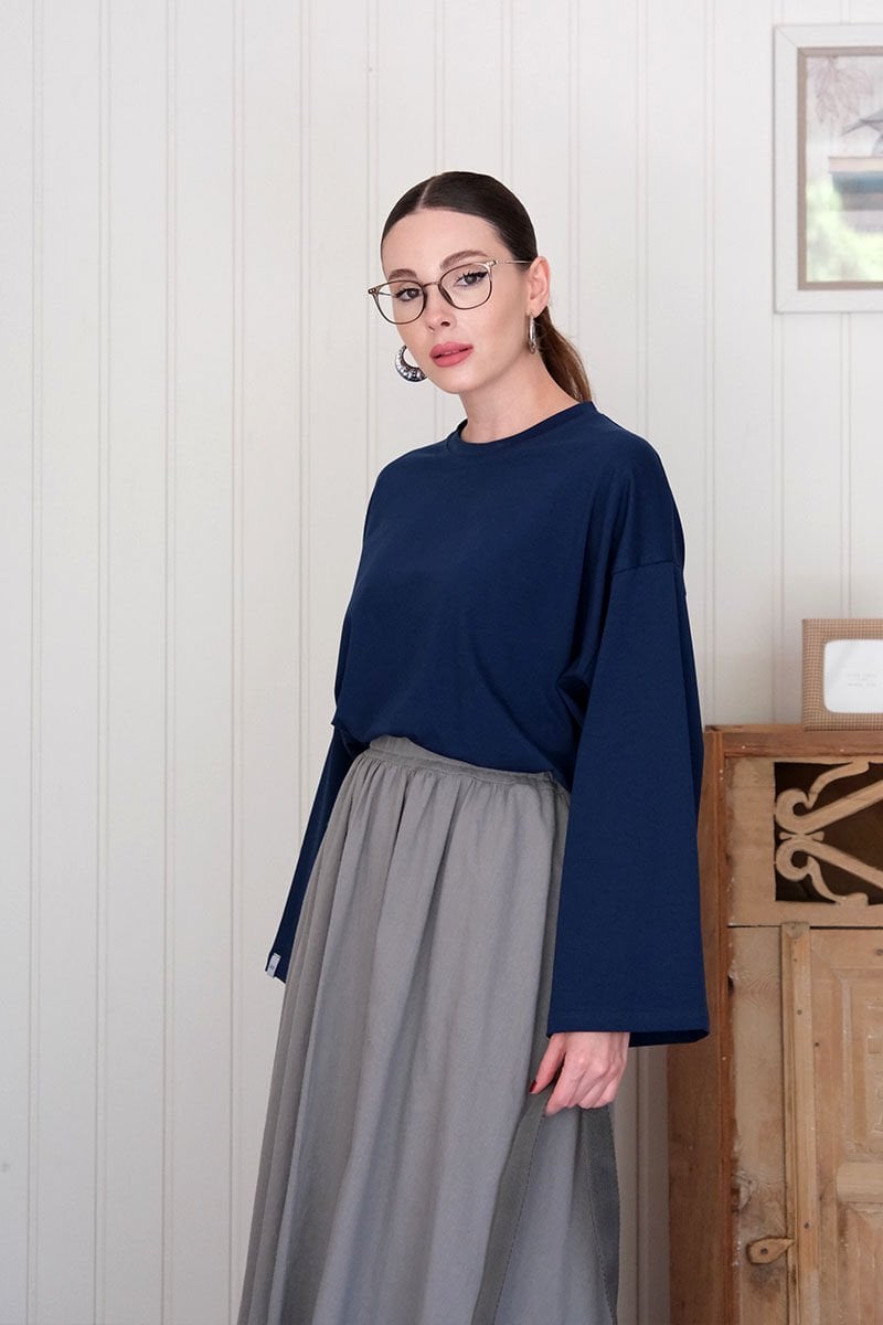 Lacivert Body & Gri Organik Keten Balon Etek Takım