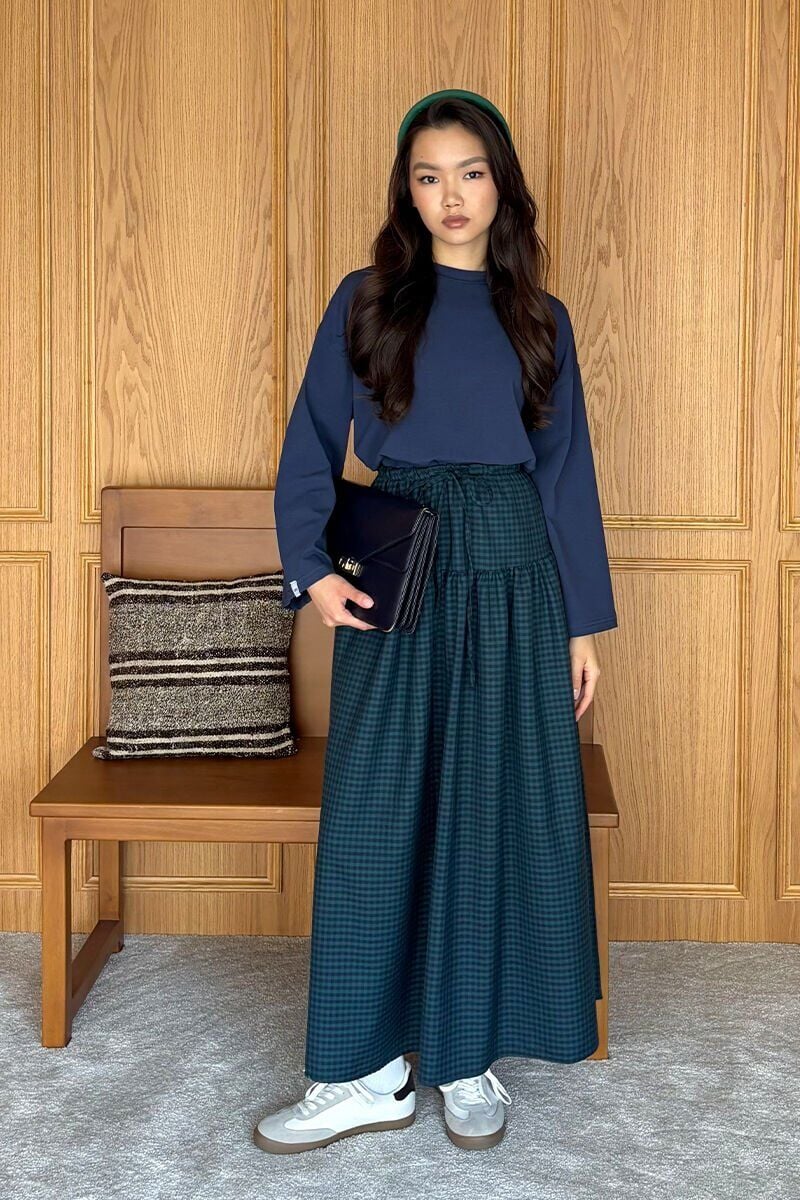 Lacivert Body & Zümrüt Pötikare Fırfır Detay Poliviskon Etek Takım