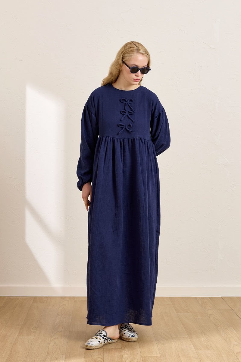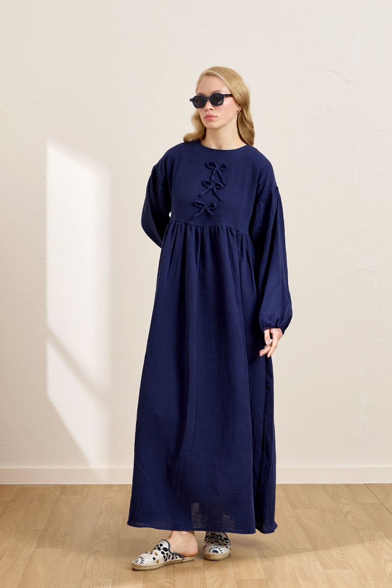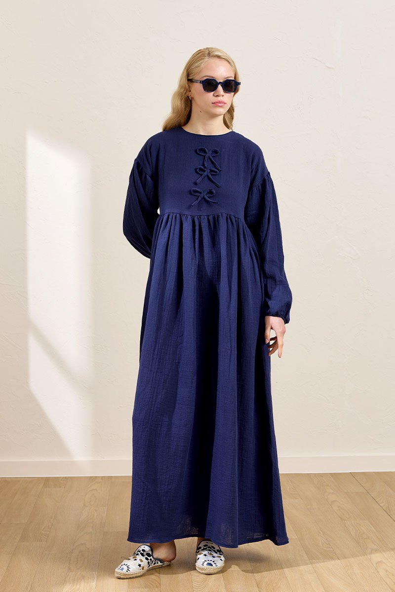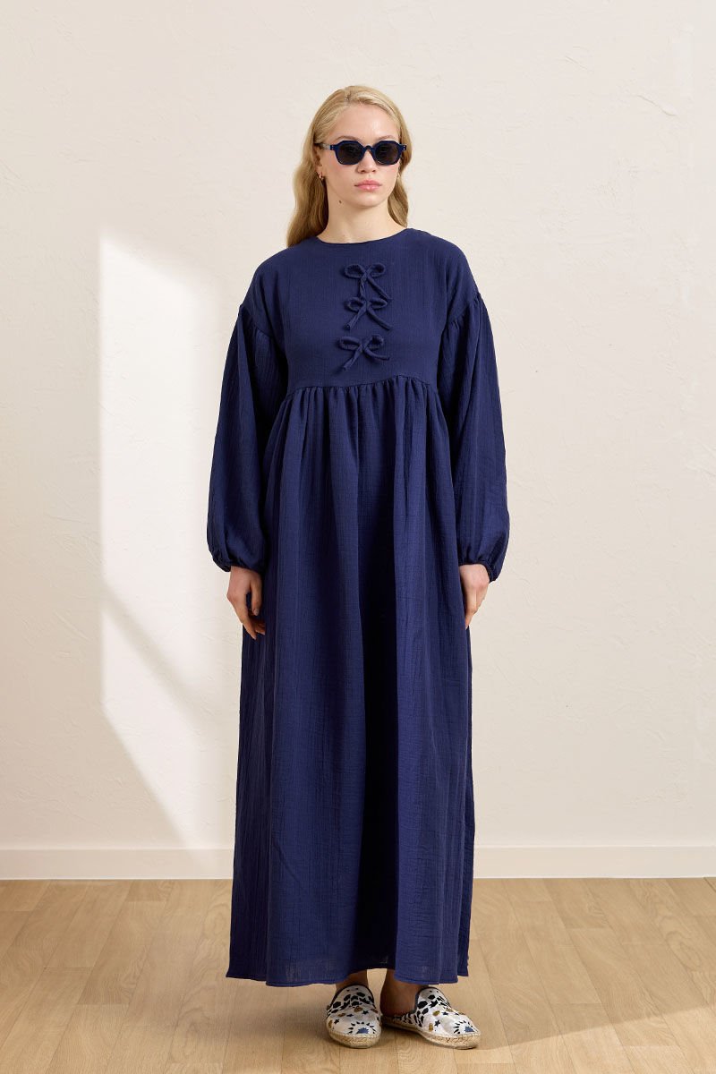 Lacivert Müslin Fiyonklu Belroba Elbise