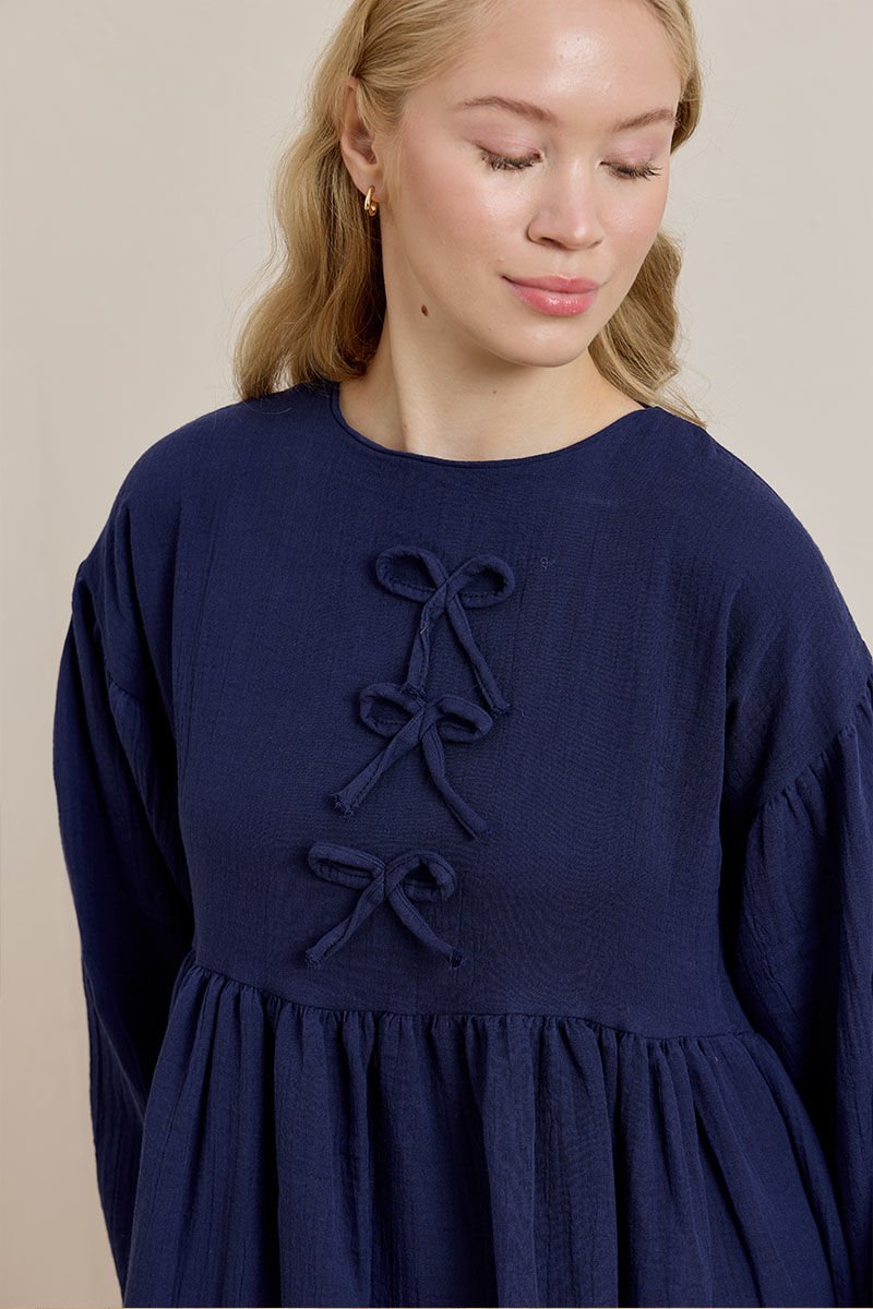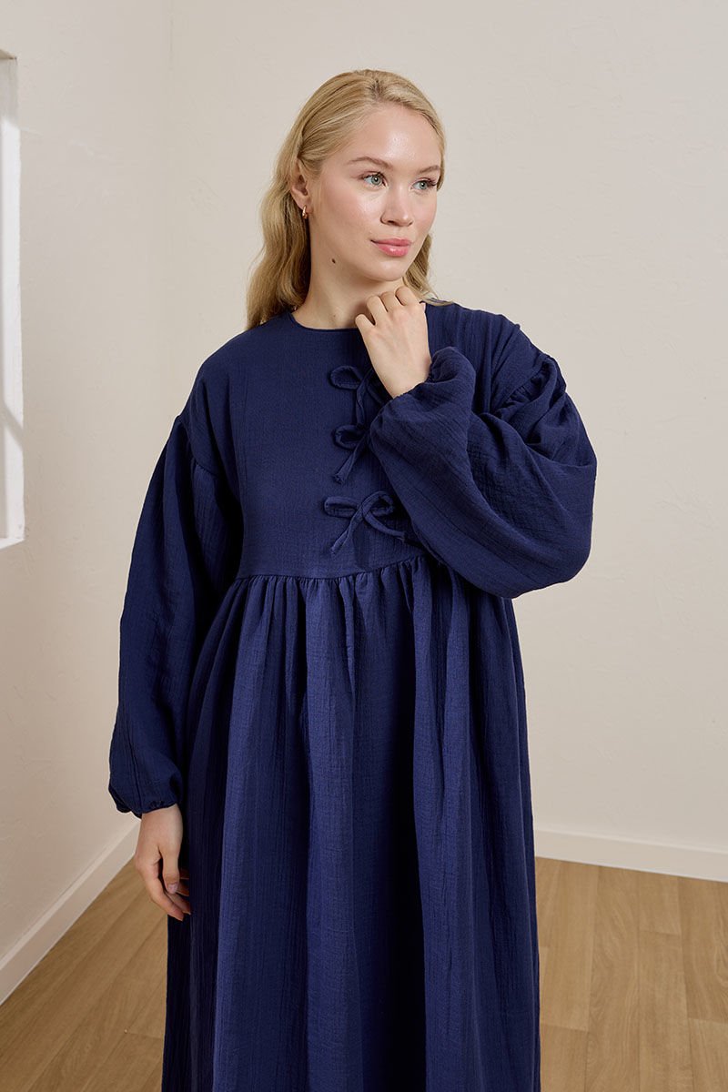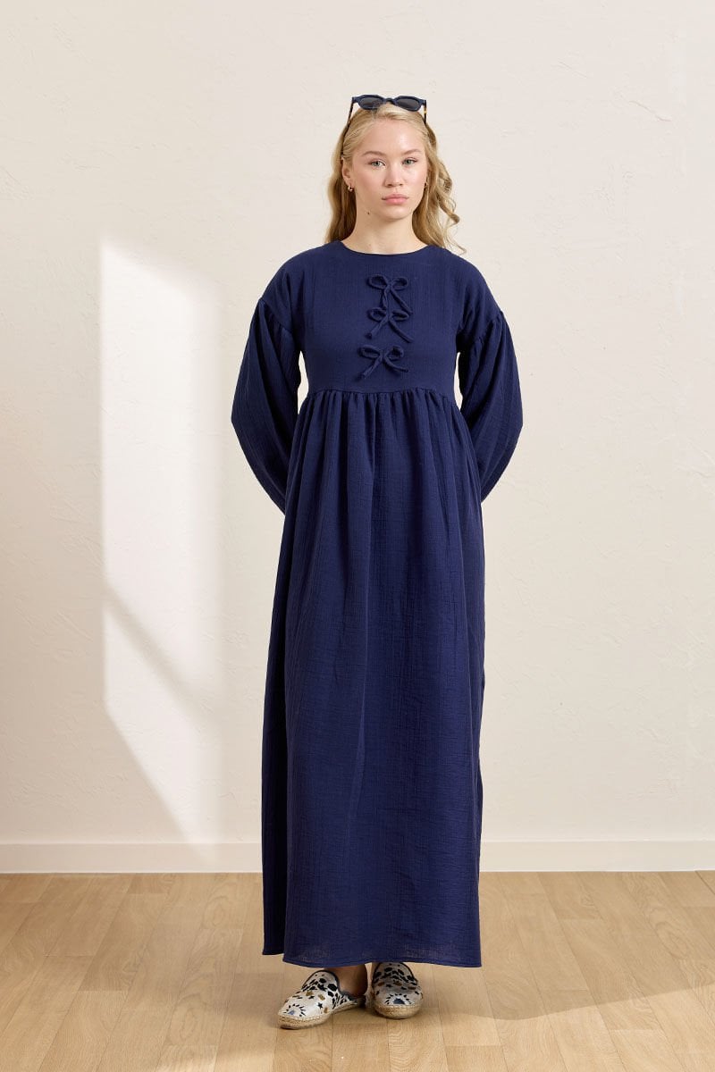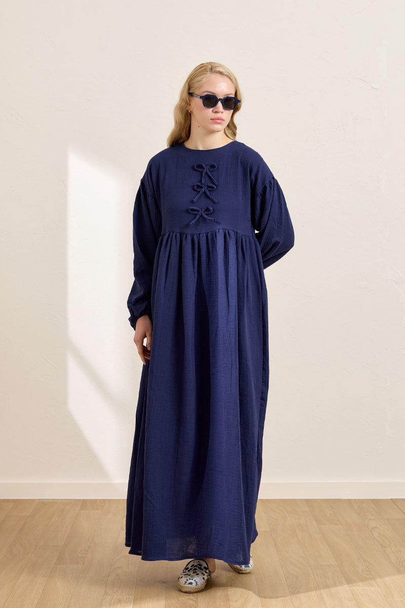 Lacivert Müslin Fiyonklu Belroba Elbise