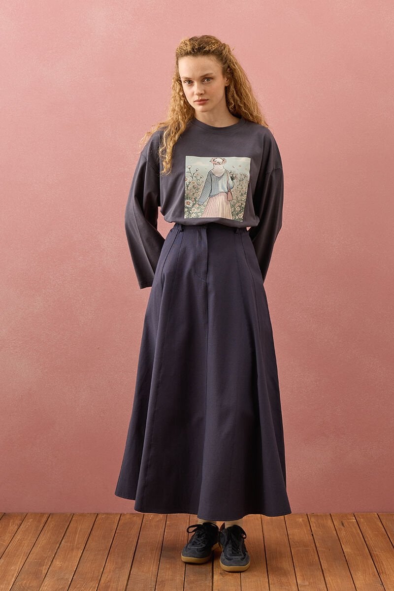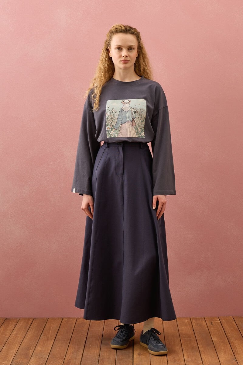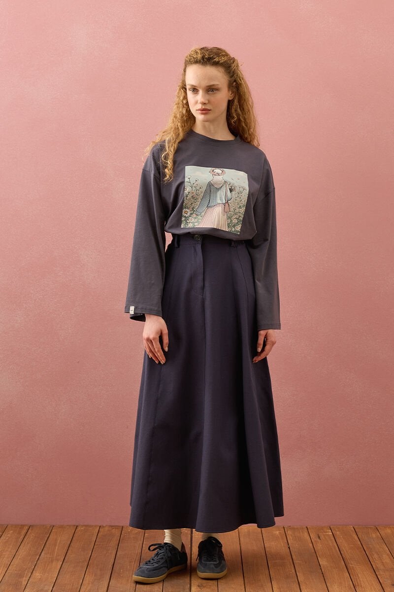 Lacivert Keten Kloş Etek