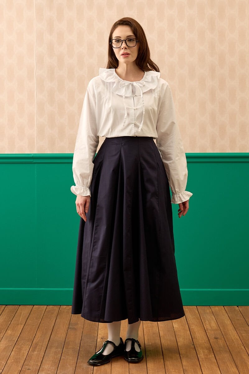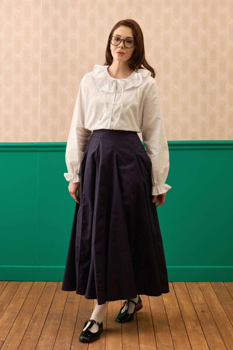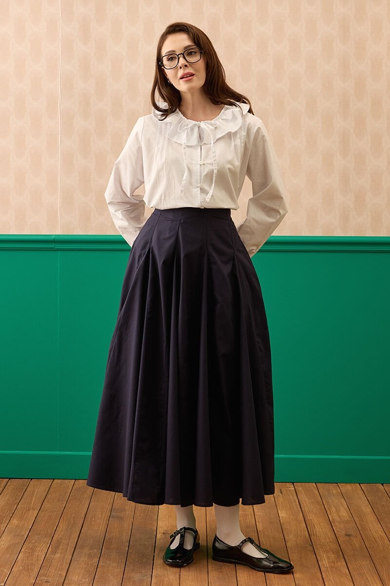 Lacivert Koton Parçalı Etek