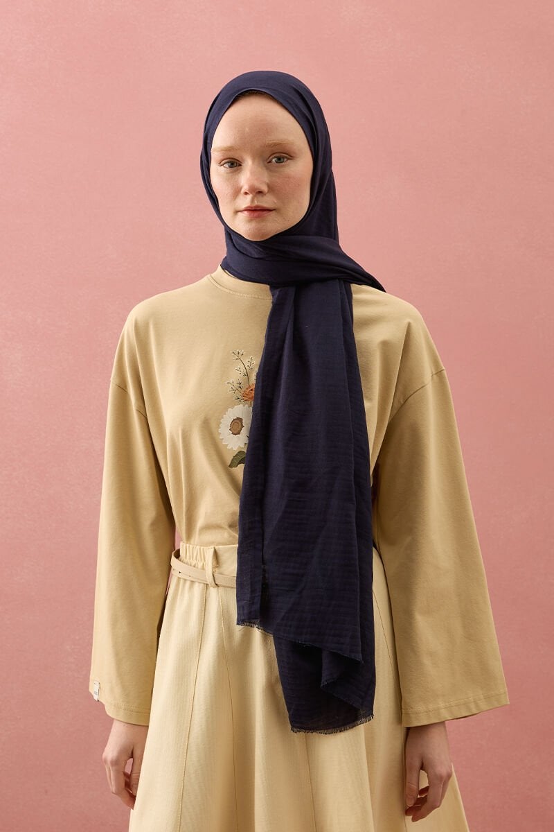 Lacivert Müslin Şal