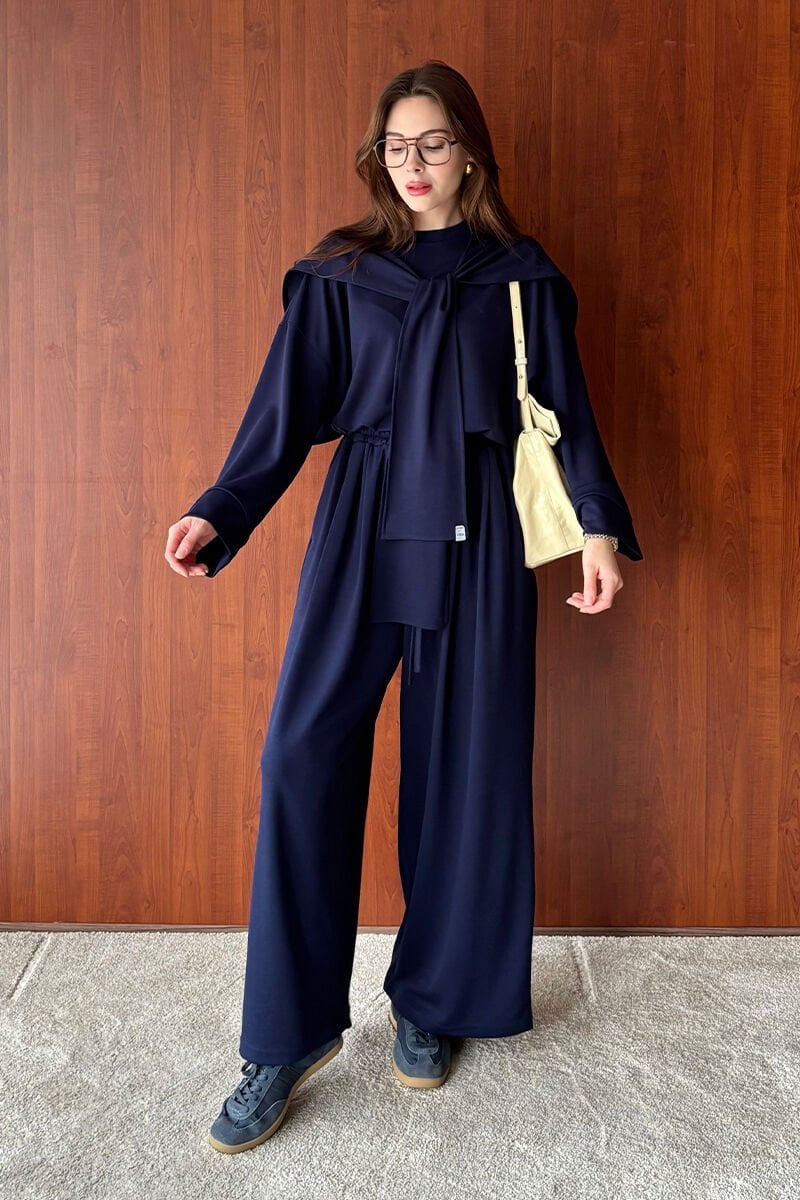 Hem evde hem dışarıda kullanıma uygun bu takım, modern ve zarif tasarımıyla gardırobunuzun vazgeçilmezi olacak.