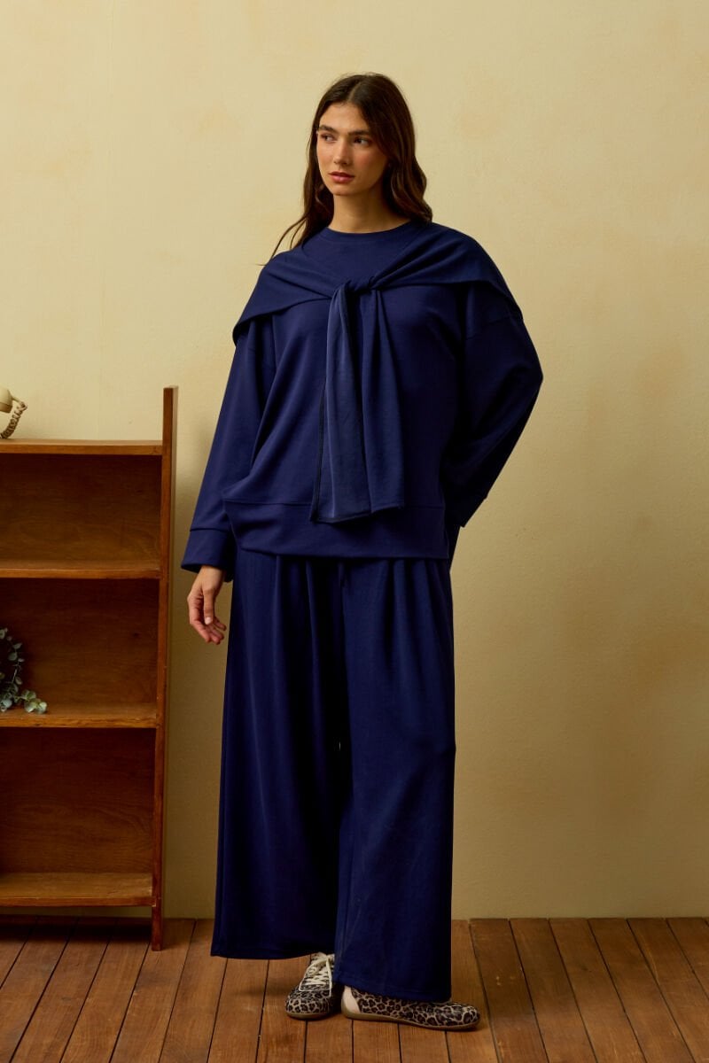 Lacivert Oysho Bağlamalı Pantolon Takım