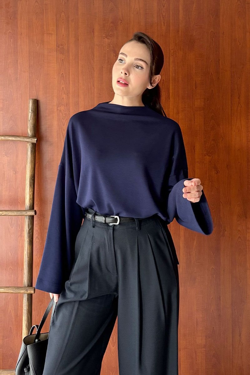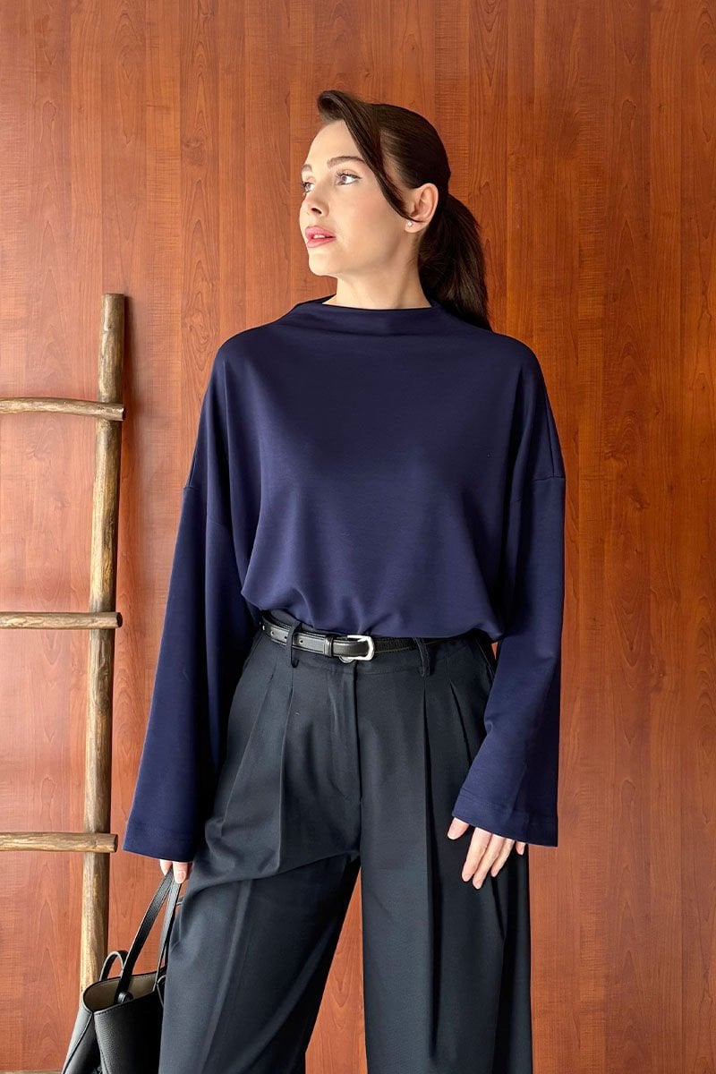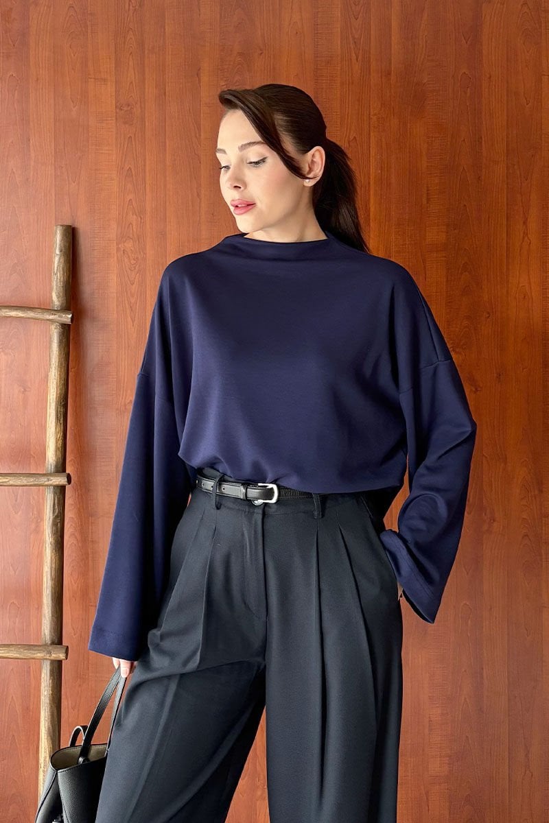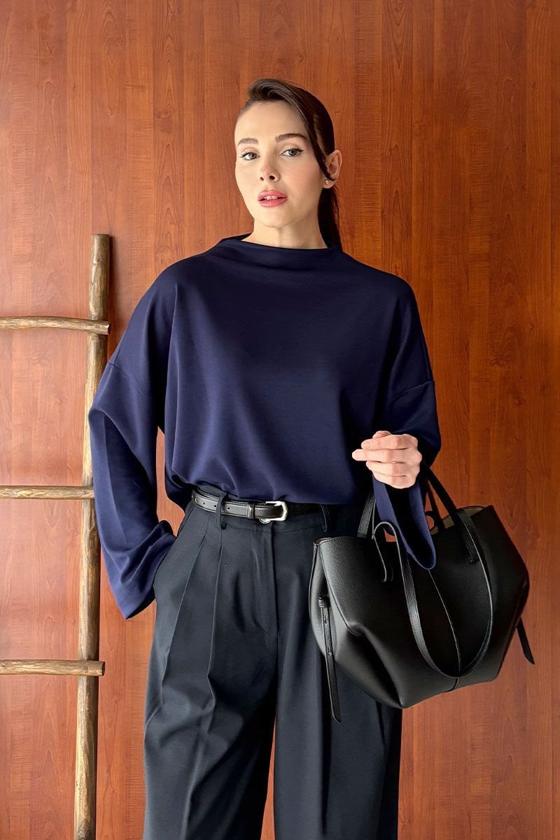 Lacivert Oysho Dik Yaka Bluz