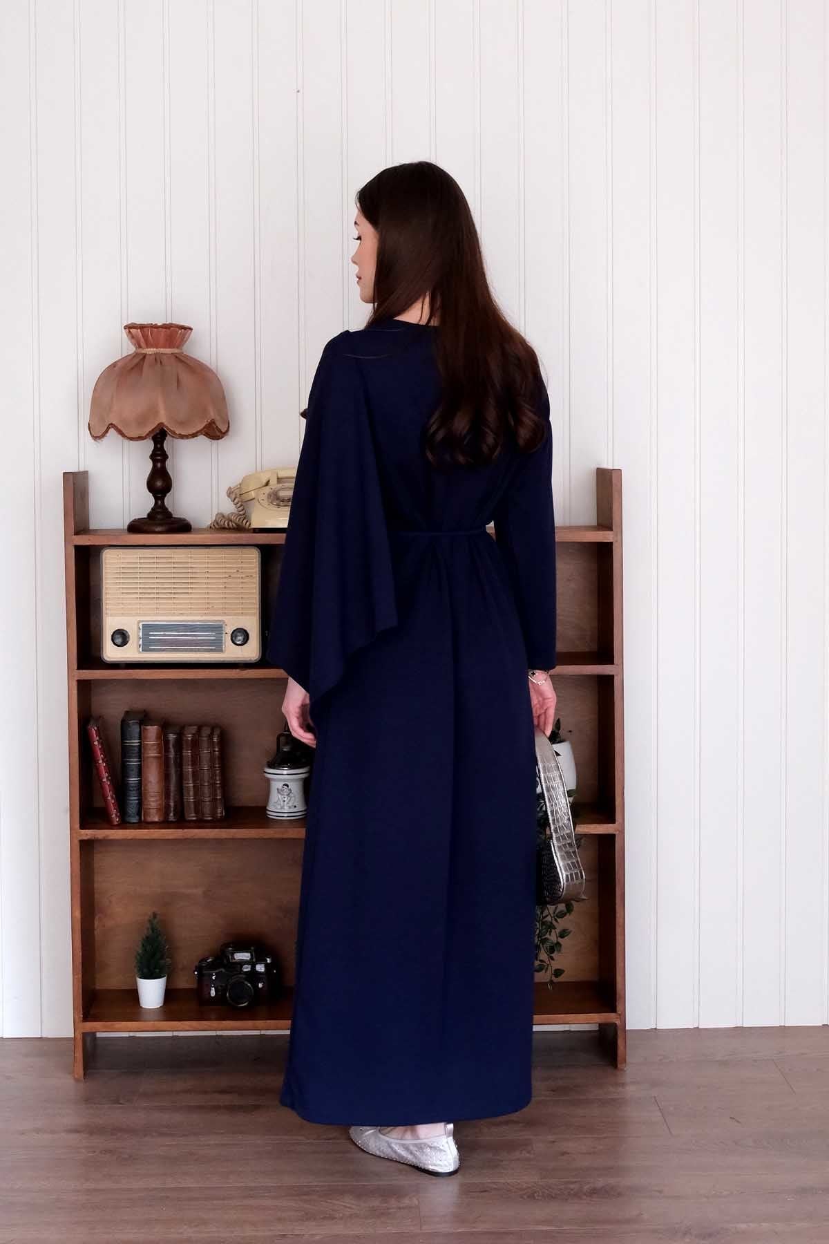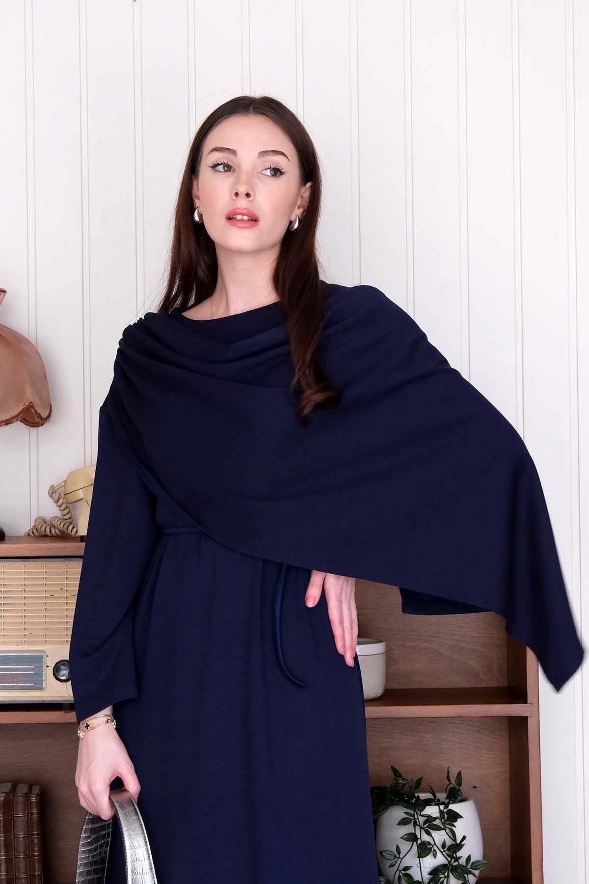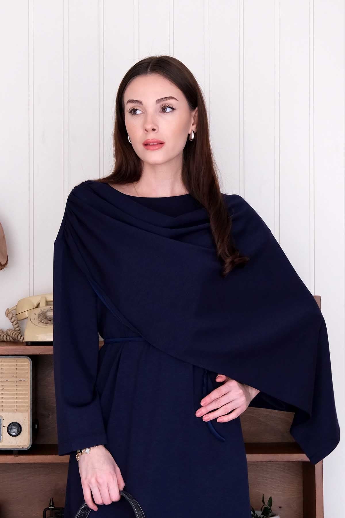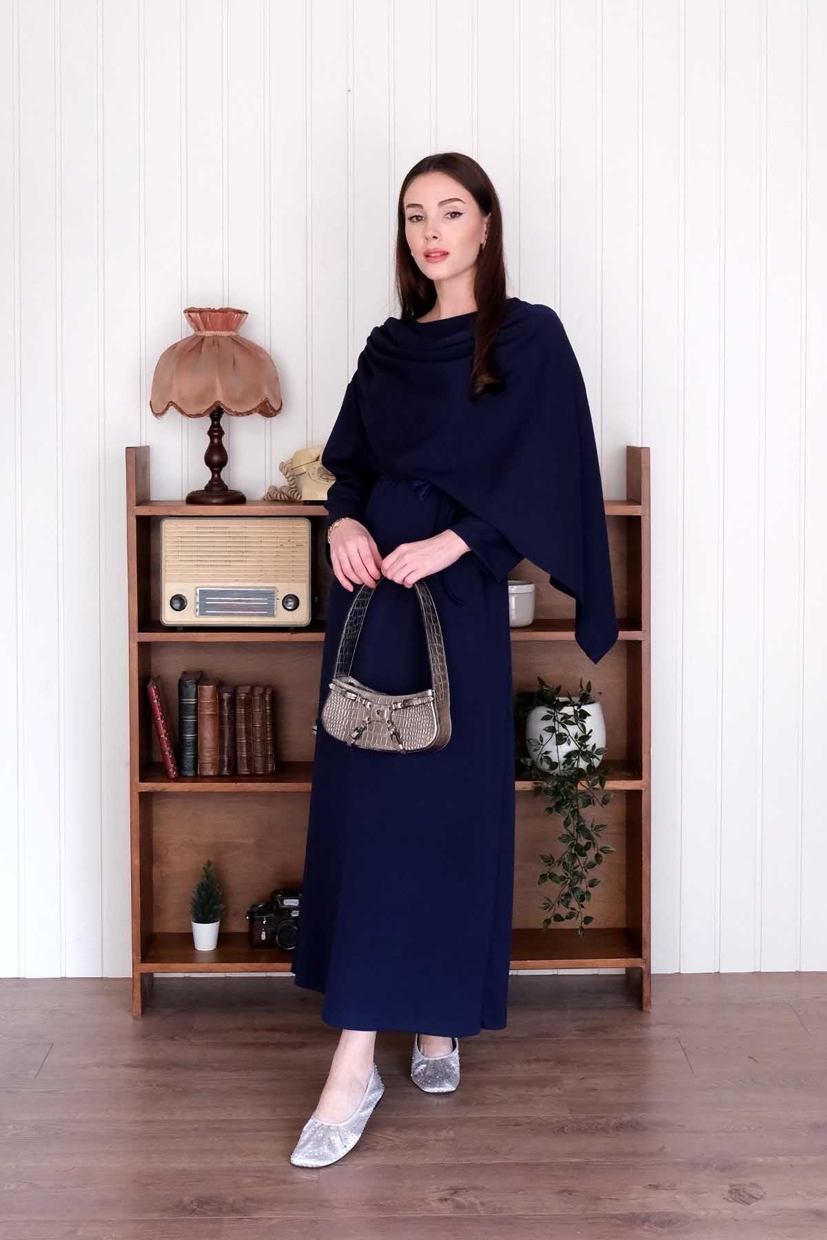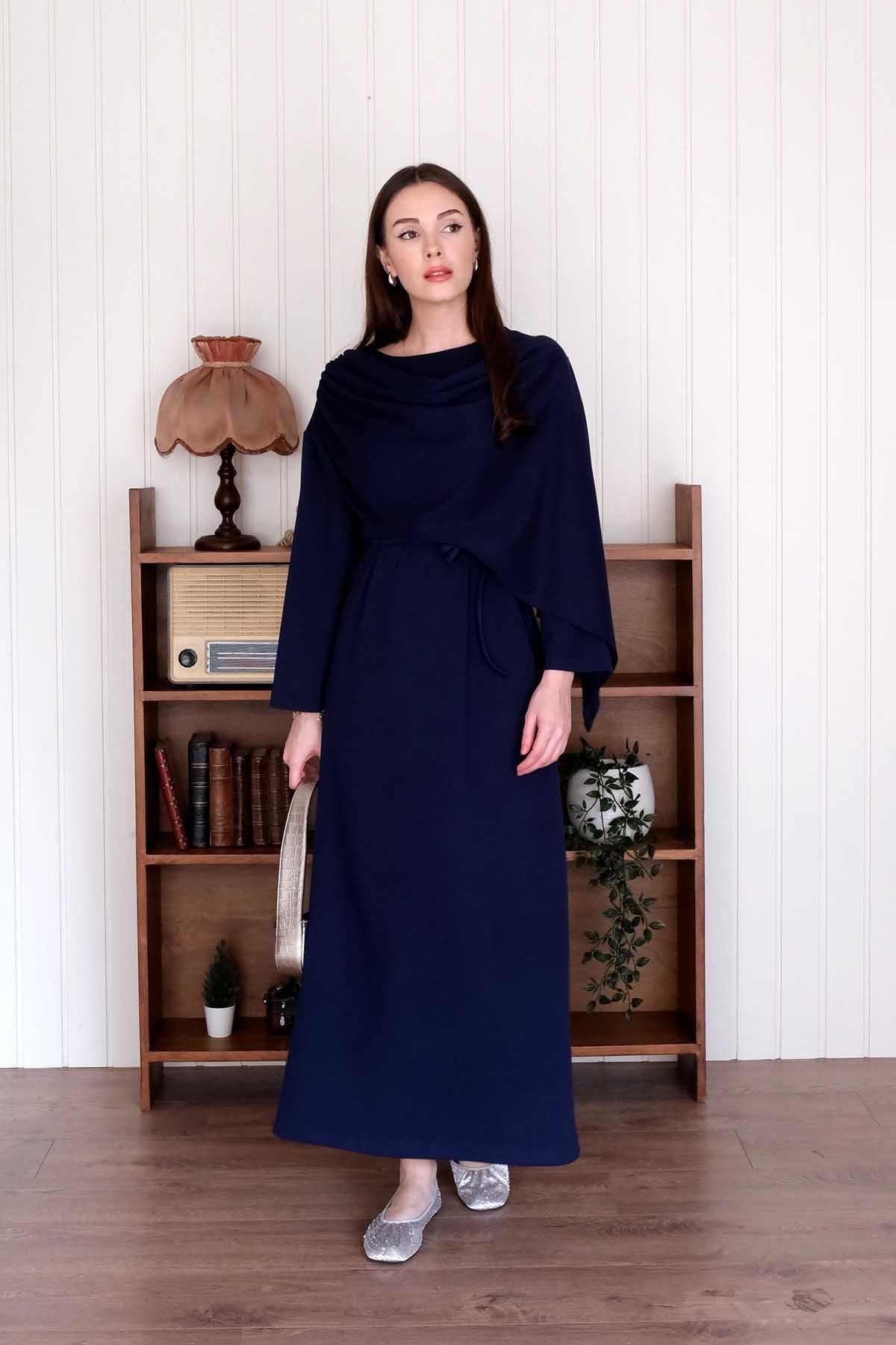 Lacivert Oysho Şal Yaka Elbise