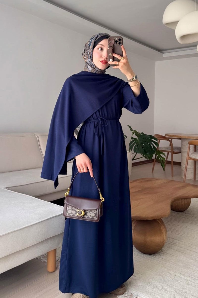 Lacivert Oysho Şal Yaka Elbise / Sema Tektaş