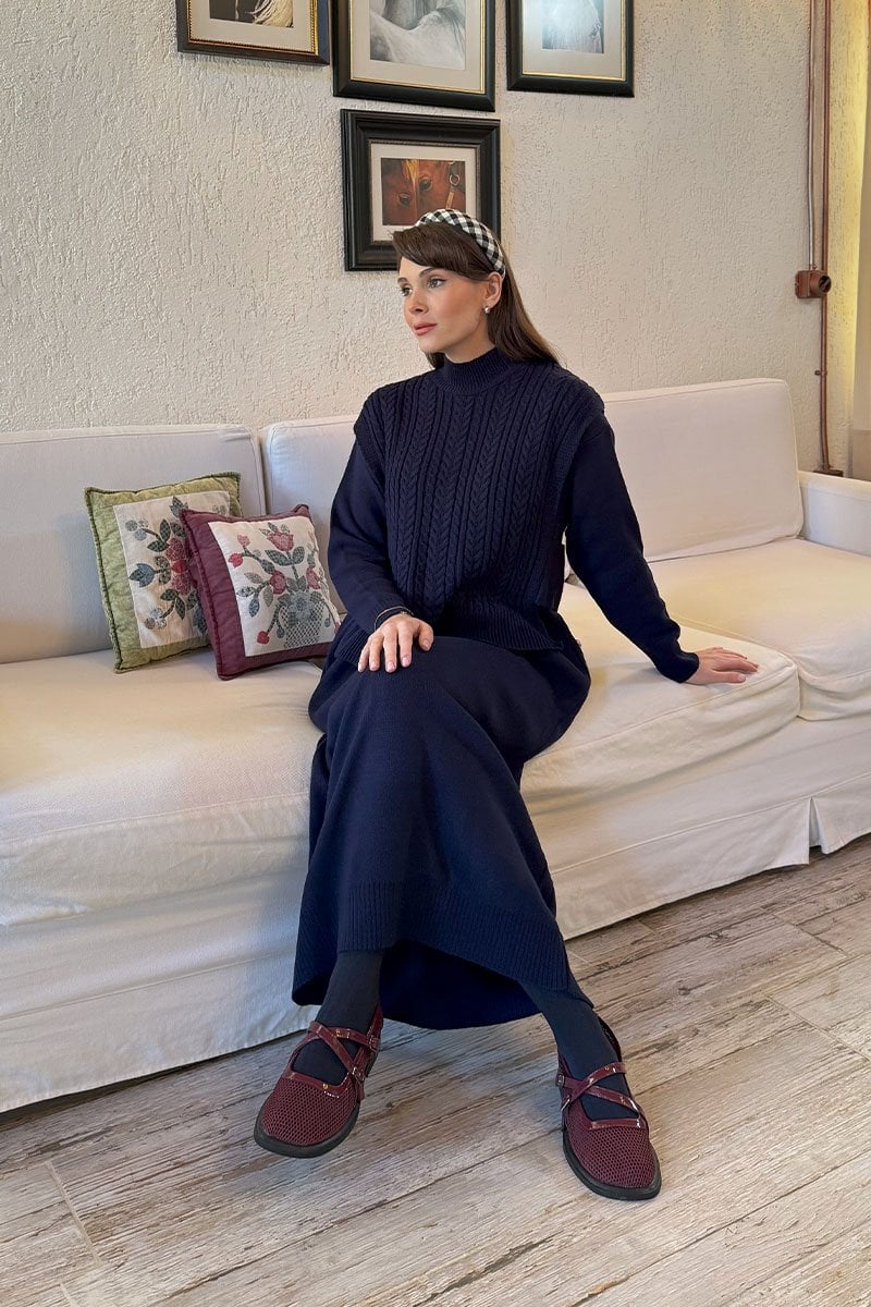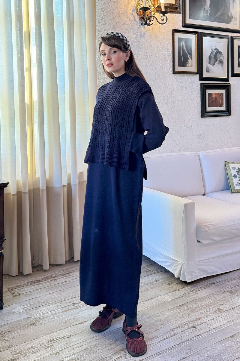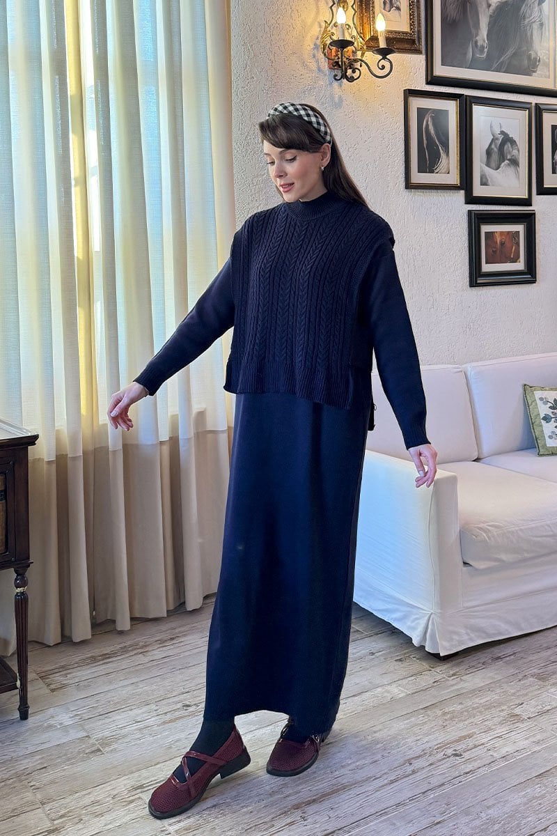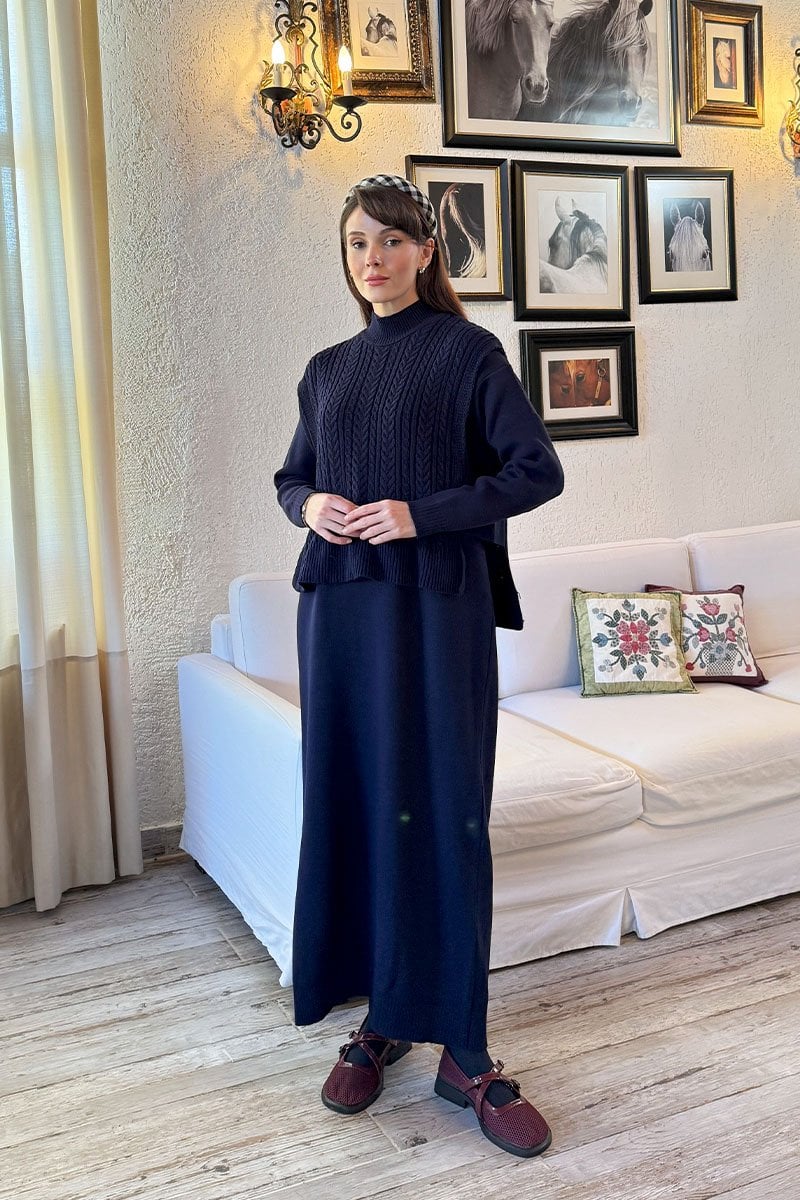 Lacivert Süveterli Takım Triko Elbise