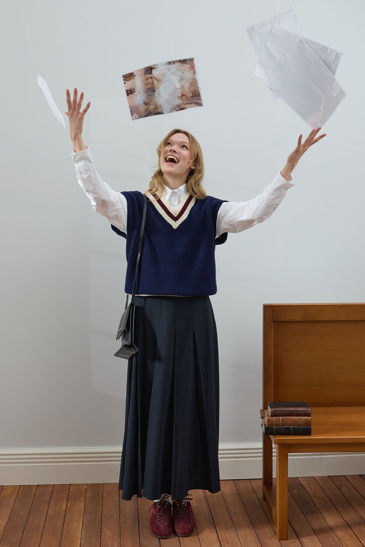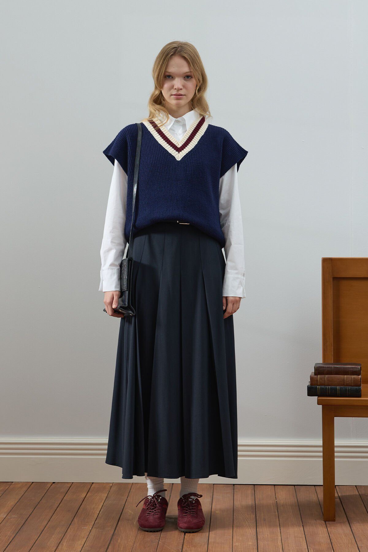 Lacivert V Yaka Süveter & Lacivert Poliviskon Kolej Etek Takım
