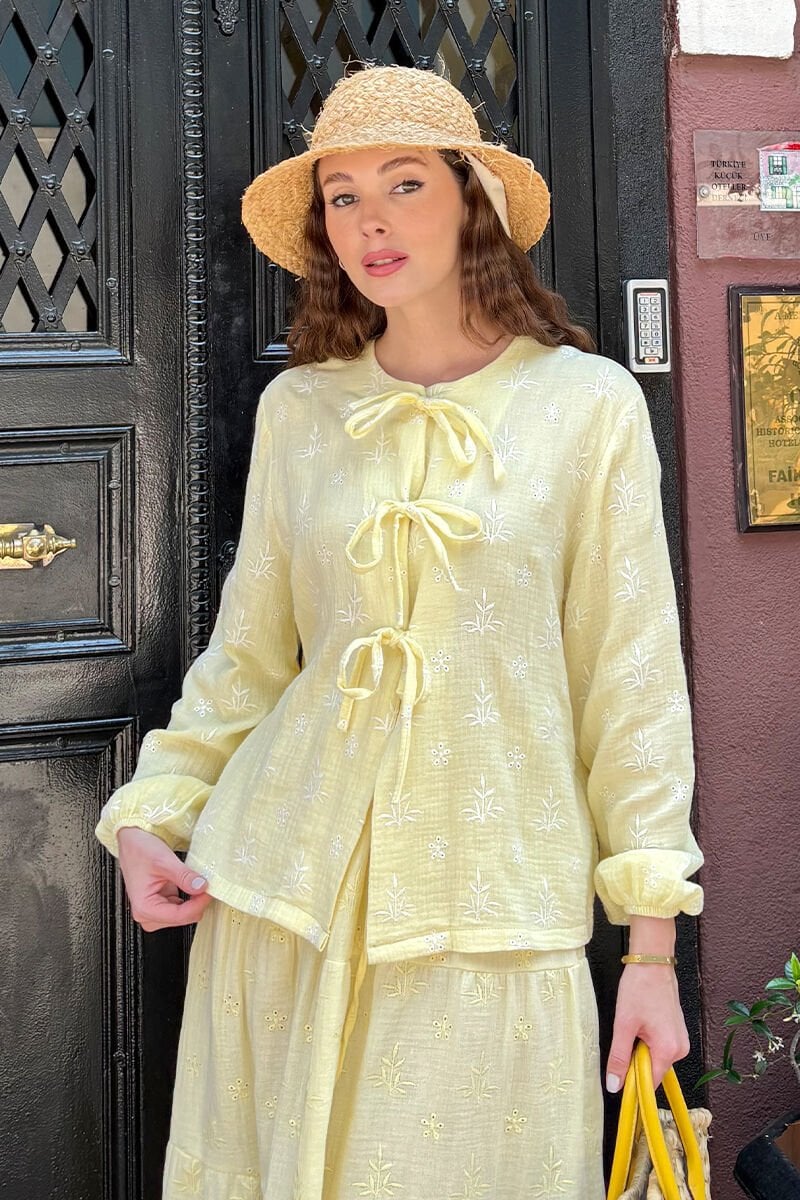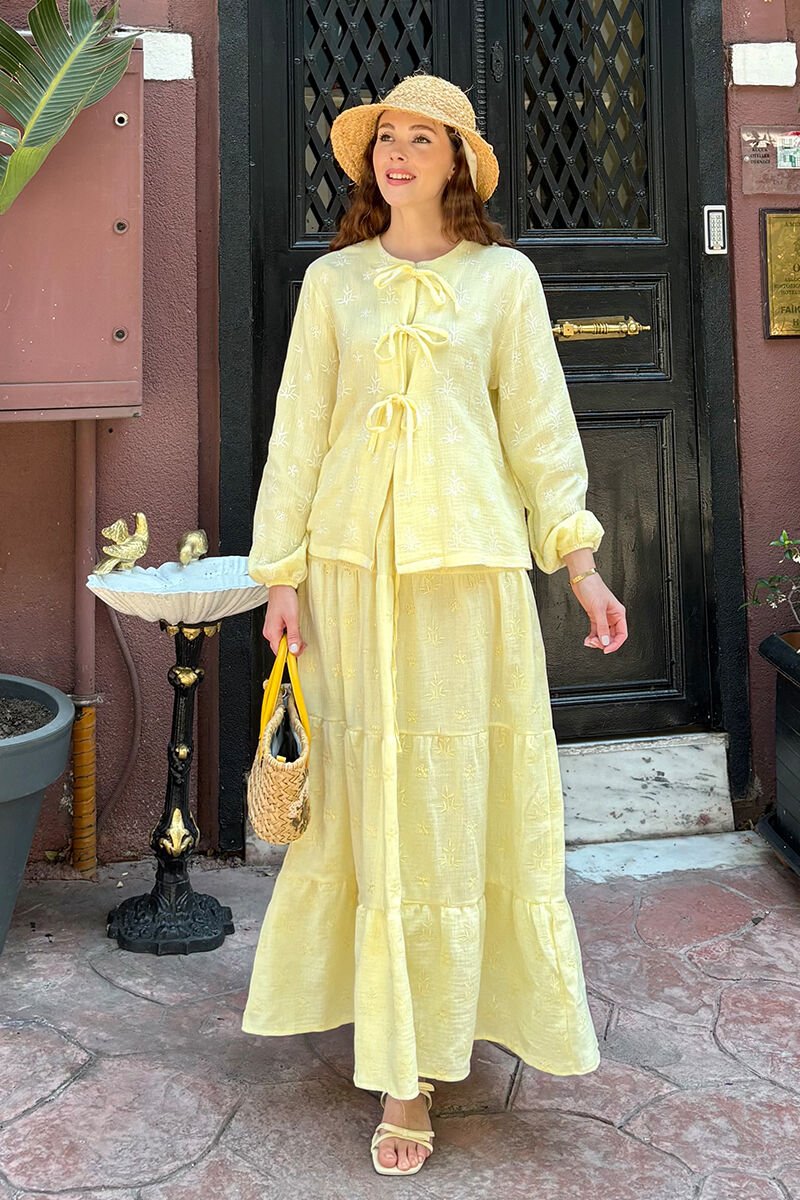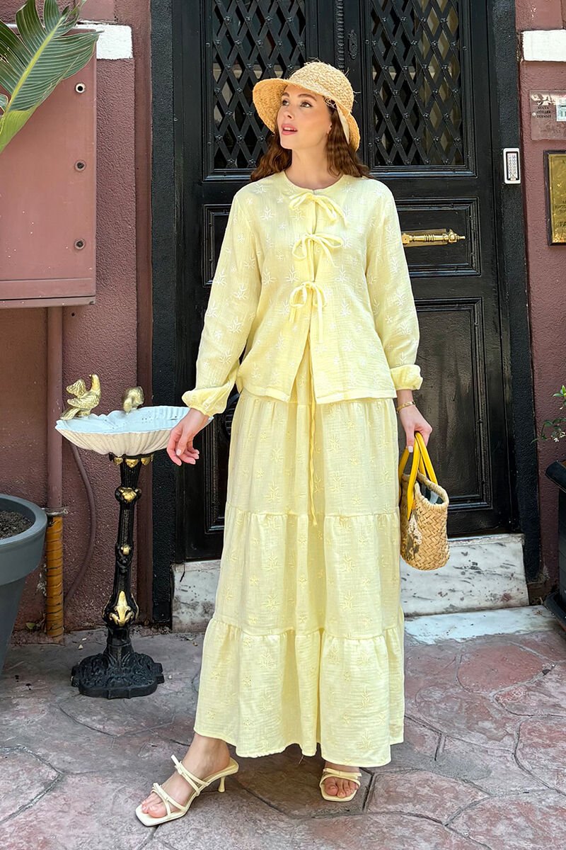Limon Sarısı Fistolu Müslin Kat Etek
