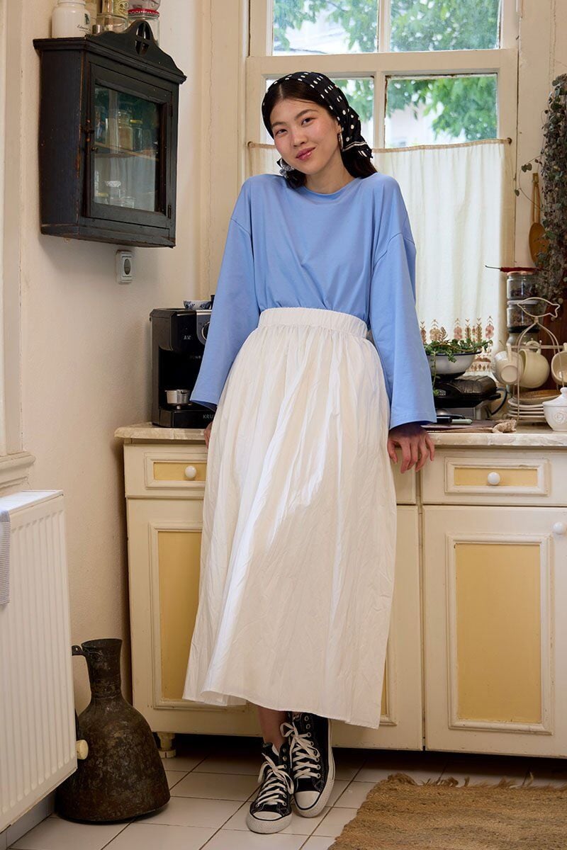 Mavi Body & Beyaz Kraşlı Balon Etek