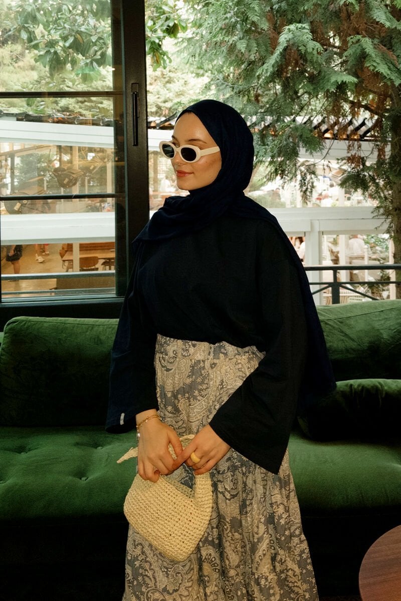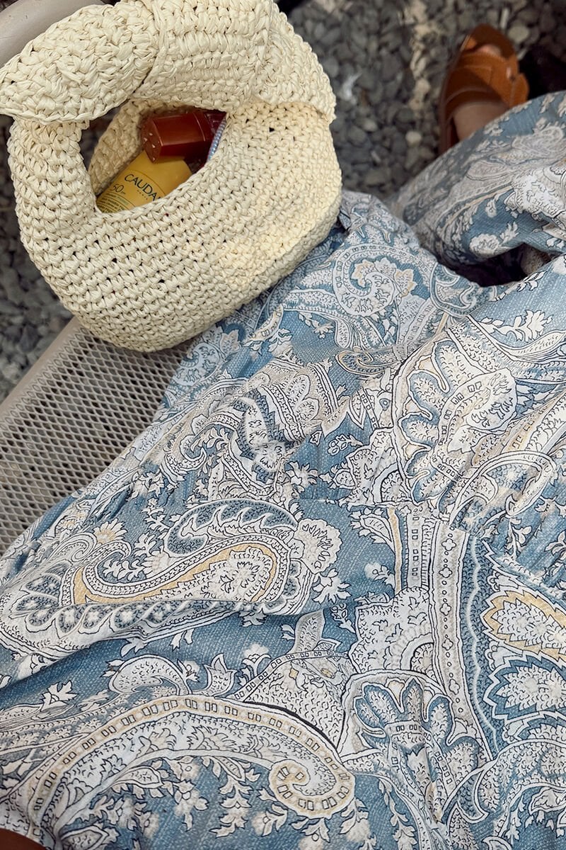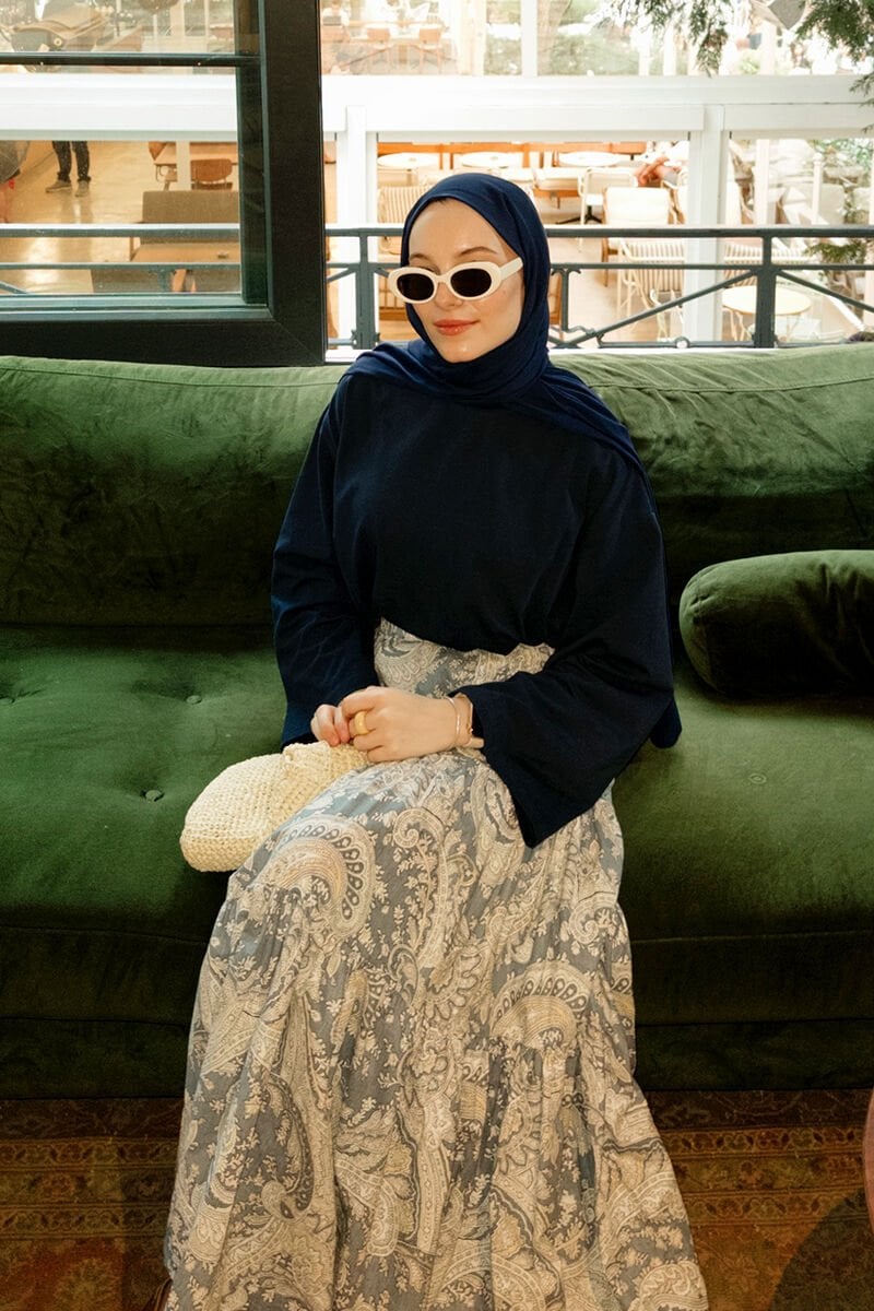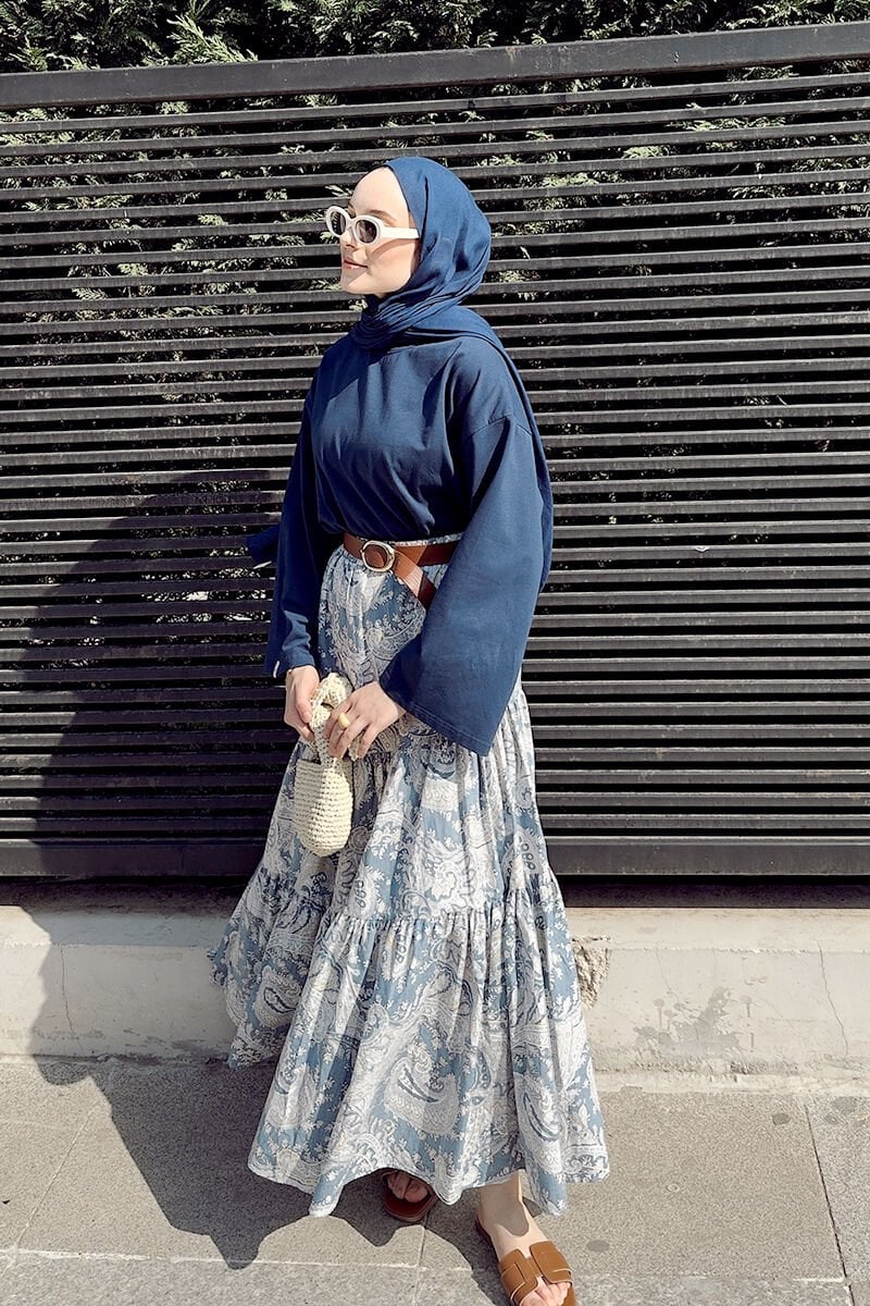 Mavi Etnik Desen Çapraz Kat Etek